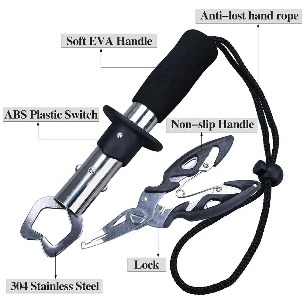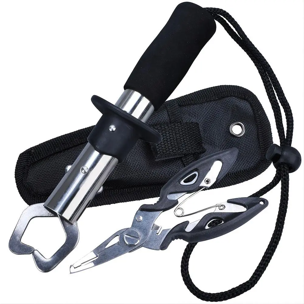 Stainless Steel Fishing Gripper with Storage Bag, Fishing Plier with Lanyard & Bottle Opener, Fishing Tool for Outdoor, Fishing Accessories Kit