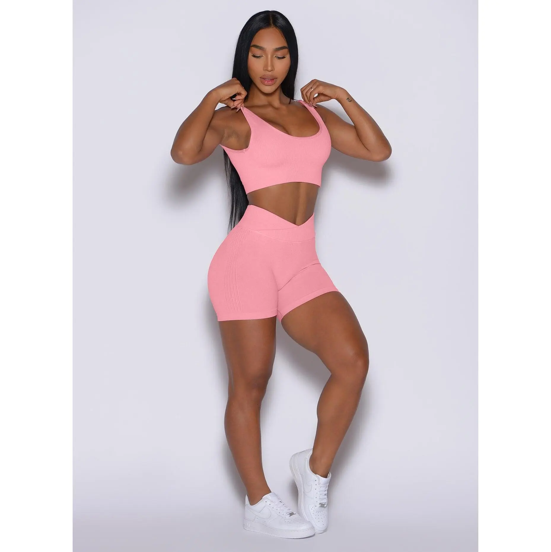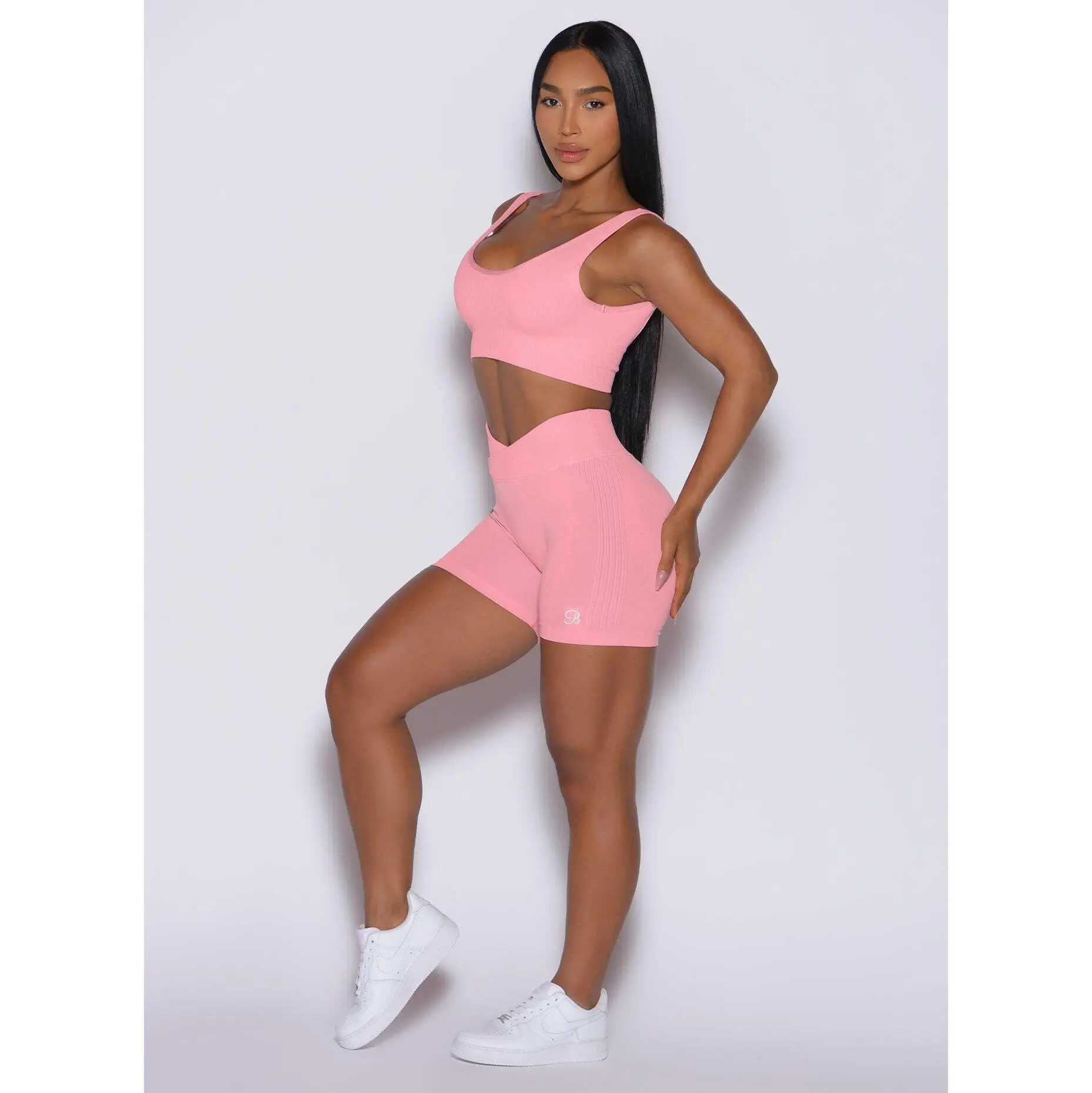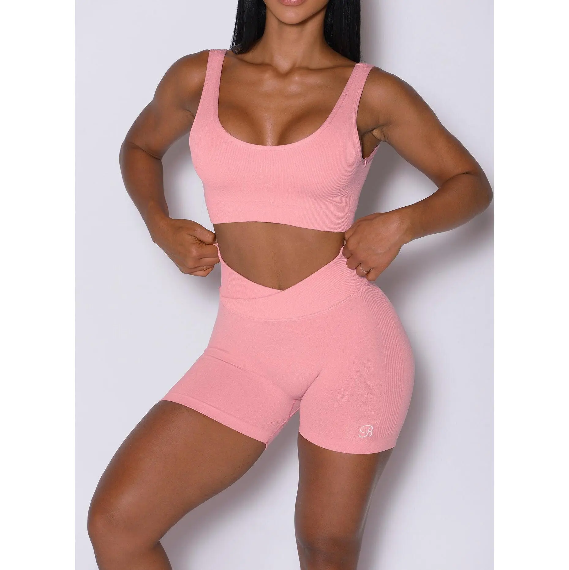 These heather rib seamless shorts are essential for total comfort and freedom of movement during your workouts. The fold-over rib waistband stays securely in place, while the stretchy, cozy fabric, featuring our signature flattering booty scrunch, adds an extra pop. These lightweight, airy shorts are also squat-proof. Pair with the matching rib sports bras for a flawless gym look.