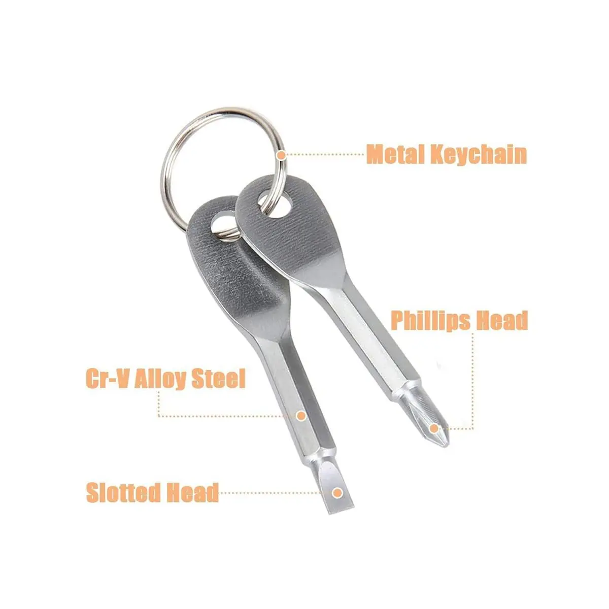 2 in 1 Keychain Screwdriver Set, Multifunctional Screwdriver, 1 Set Mini Pocket Phillips and Flat Head Screwdriver with Key Ring, Outdoor Survival Emergency Handy Tool, Portable