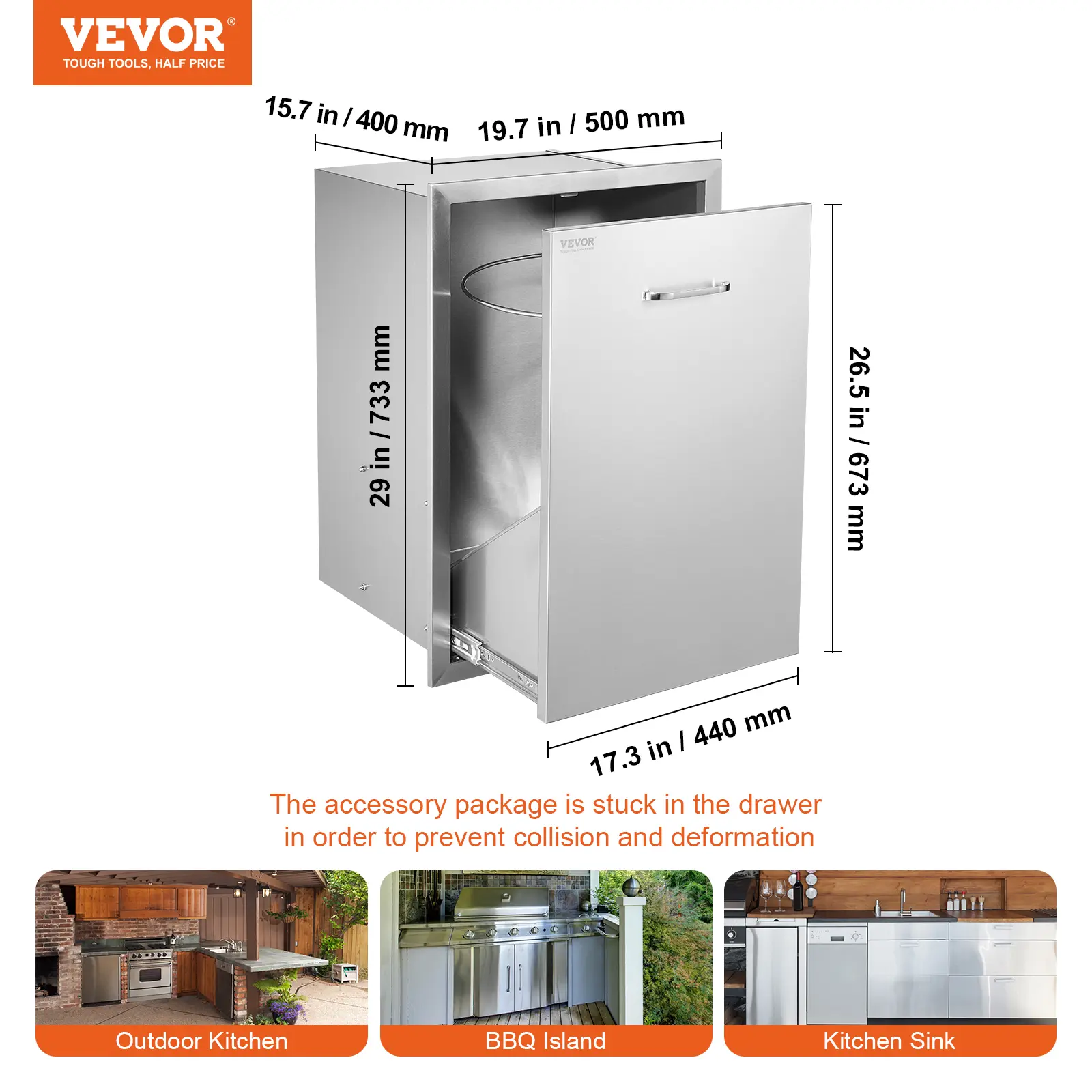 • Premium Details: The stainless steel BBQ drawers were built with a lot of consideration, providing you maximum convenience and security. Round corners can reduce the scratch while using; a sleek handle can allow you to open the drawer effortlessly; the seamless design can keep your inside items dry and secure.