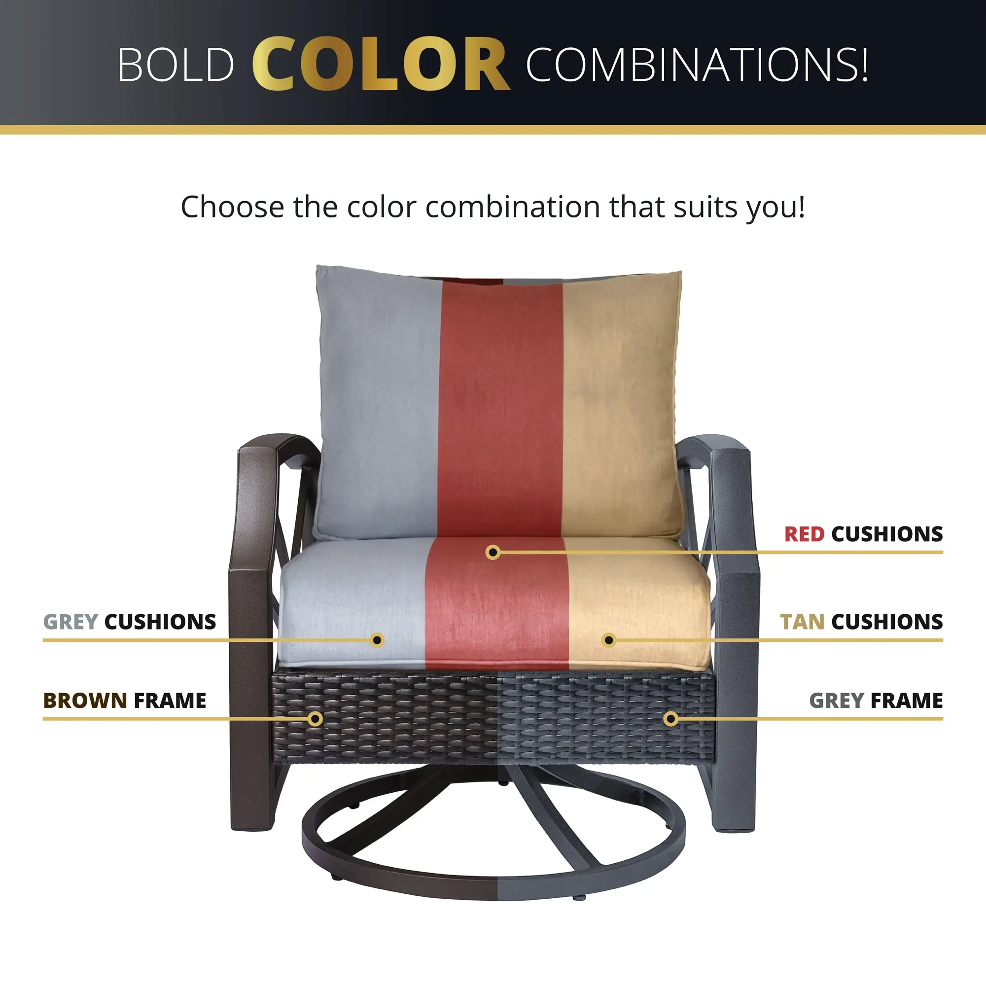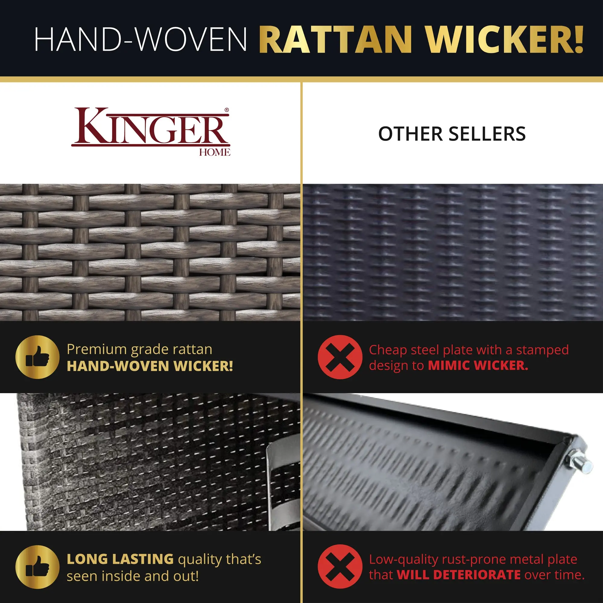 I’m not a reviewer ... but I HAD to write about this purchase!I was sooo hesistant to make a furniture purchase sight unseen but I finally hit the buy button... it arrived quickly, beautifully packed & is really a lovely, comfortable set. Sadly & surprisingly, the table arrived damaged, so I emailed the seller & without any fuss I got a replacement table in 3 days!! And they threw in chair covers for the trouble!The fire table is great... very warm & cozy & plenty of space for glasses & plates around the edge.We LOVE the swivel chairs so we can enjoy the 360 view!I highly recommend Kinger for their well made furniture as well as the amazing customer service!I also loved the fact that I could buy an extra set of cushion covers too! Aqua for the summer!!