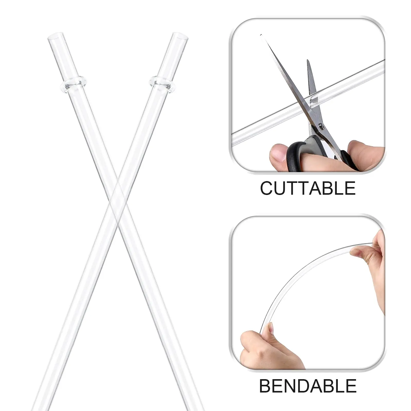 Product Includes - 24 pcs clear reusable plastic straws and 4 straw cleaning brushes.
