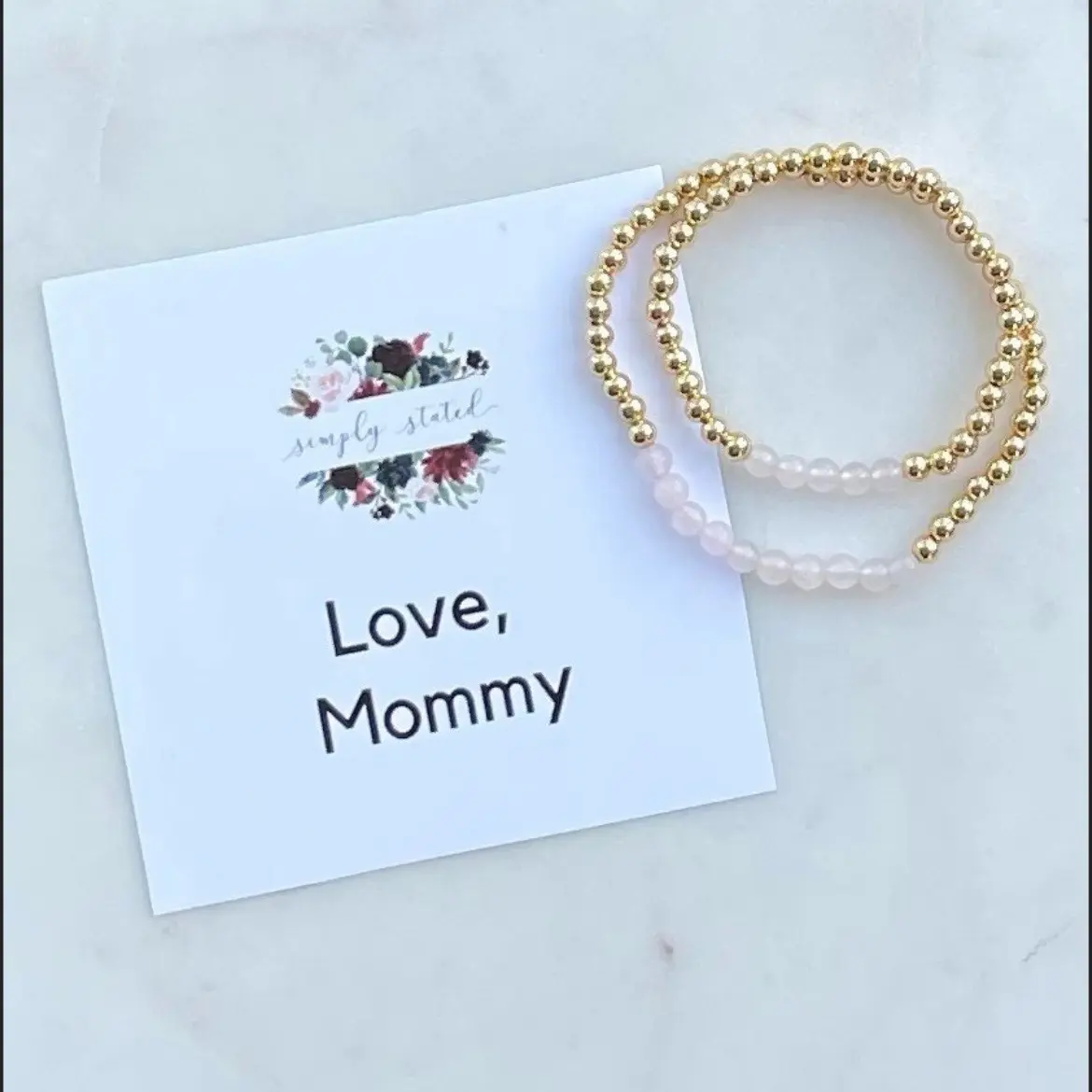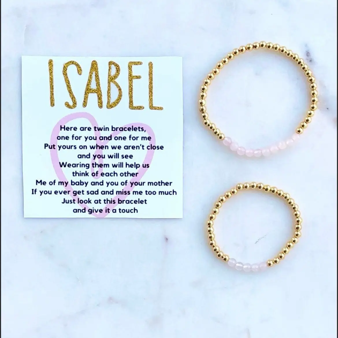 Each bracelet set is packed ready to gift in a box with a personalized poem. Make sure to leave the name of the child (and gift giver!) so they know it was made especially for them.