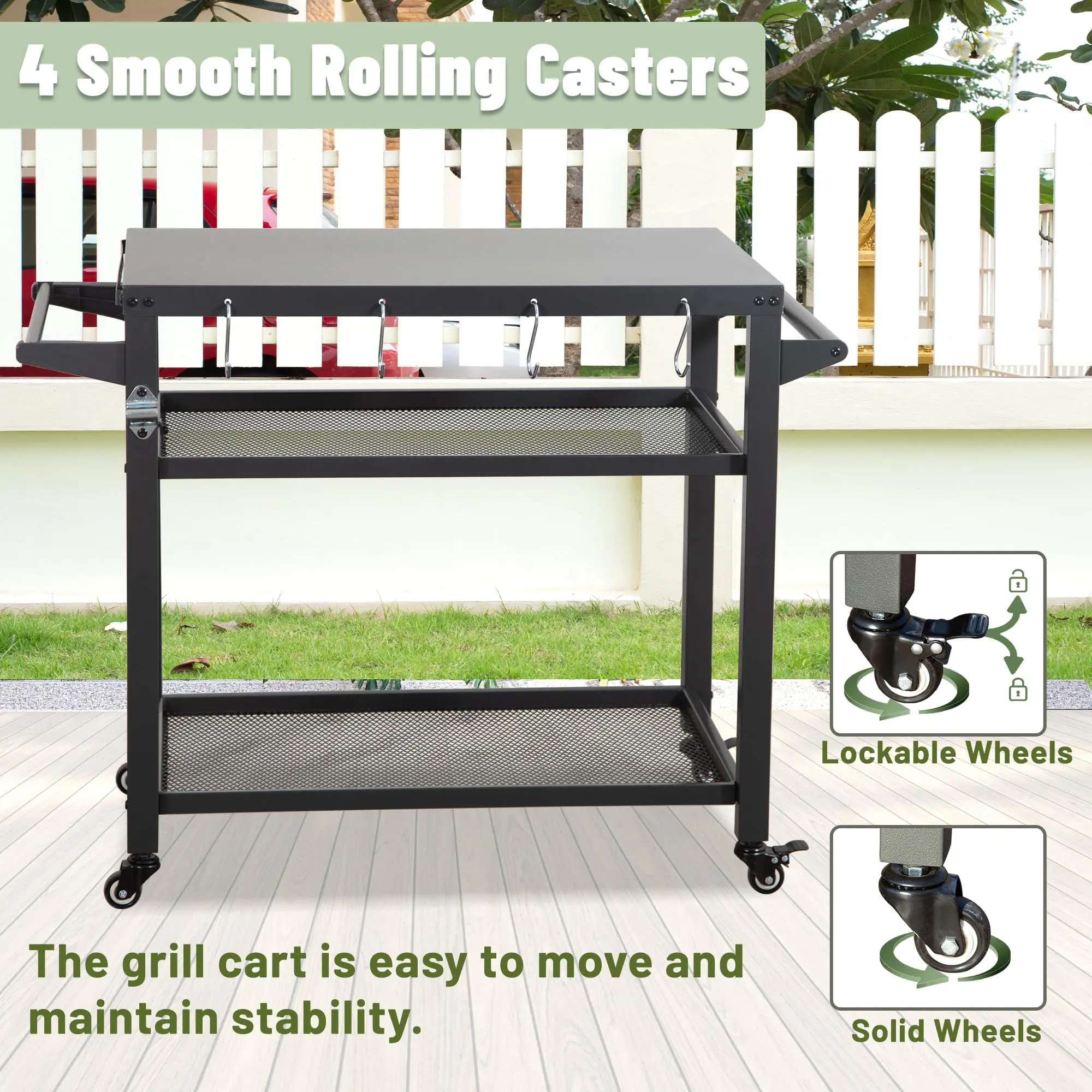 ·Extra Tool Hooks/Rack-- Stay organized and keep your grilling essentials close at hand with additional tool hooks provided on the side of the BBQ cart. Conveniently hang utensils, brushes, and accessories for quick access while cooking.