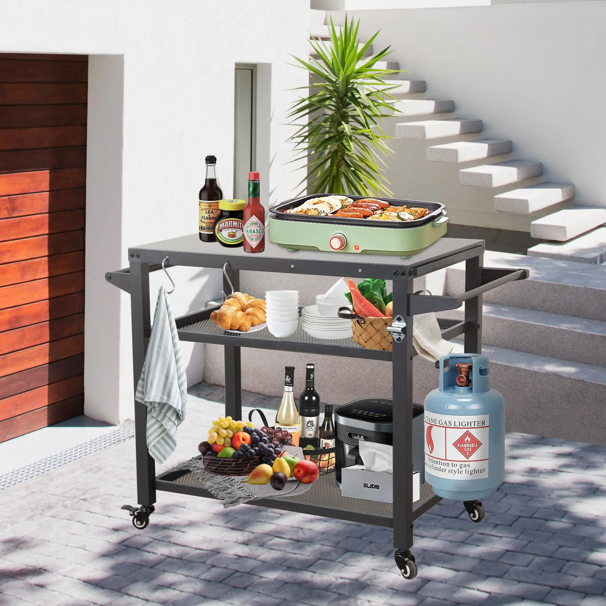 ·Ample Storage Spaces-- Domi Outdoor Cooking Prep Table offers a spacious cooking and serving area. With a three-shelf construction, you have plenty of storage space for all your grilling essentials, from food to tools and fuel.