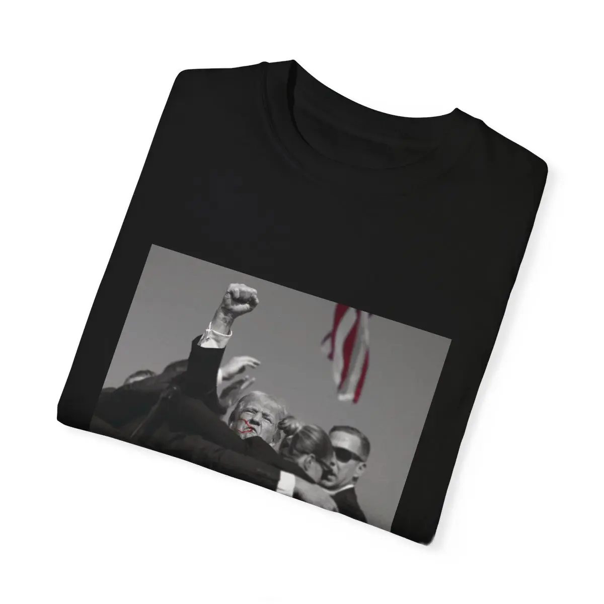 Survivor-in-Chief: Trump's Tactical Takedown! Celebrate his unflinching resilience with our exclusive tee, 'Trump: A Bulletproof Legacy.' It's more than a shirt—it's a statement piece for those who admire strength, tenacity, and a bit of political wit. Join the triumph and grab yours today!