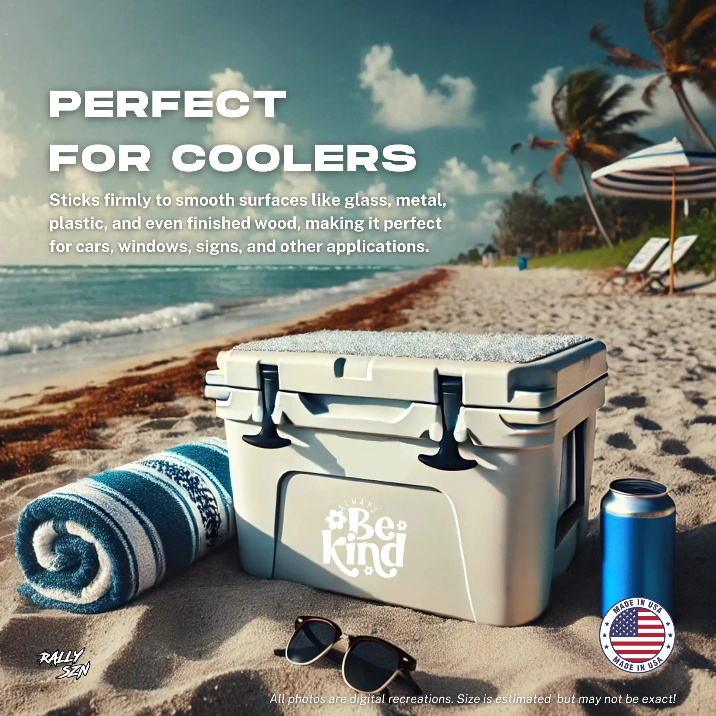 Always Be Kind Vinyl Decal Sticker made from high-quality Oracal 651 vinyl, rated to last 5+ years outdoors with proper installation. Includes a prep pad and easy-to-follow installation instructions. Proudly made in the USA.