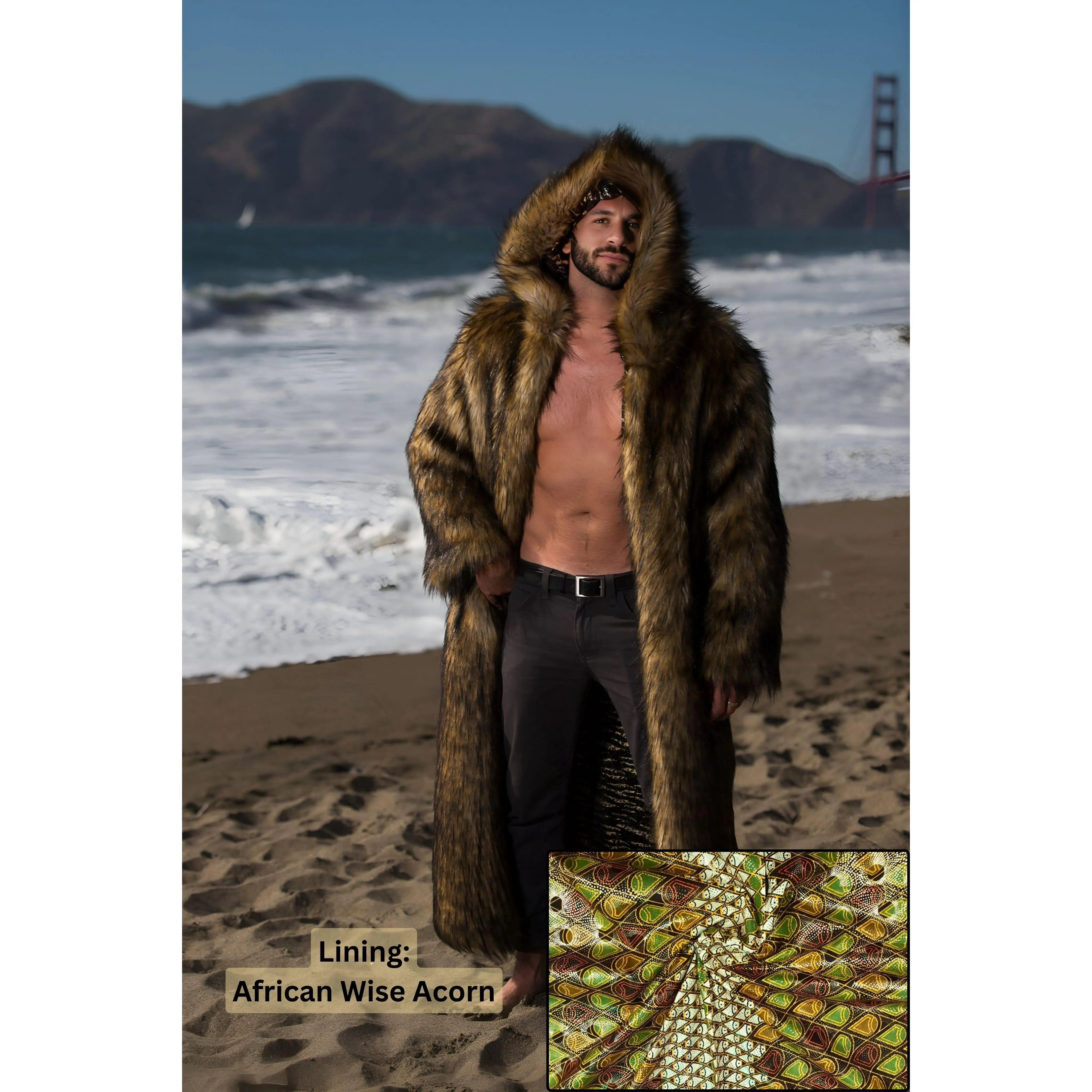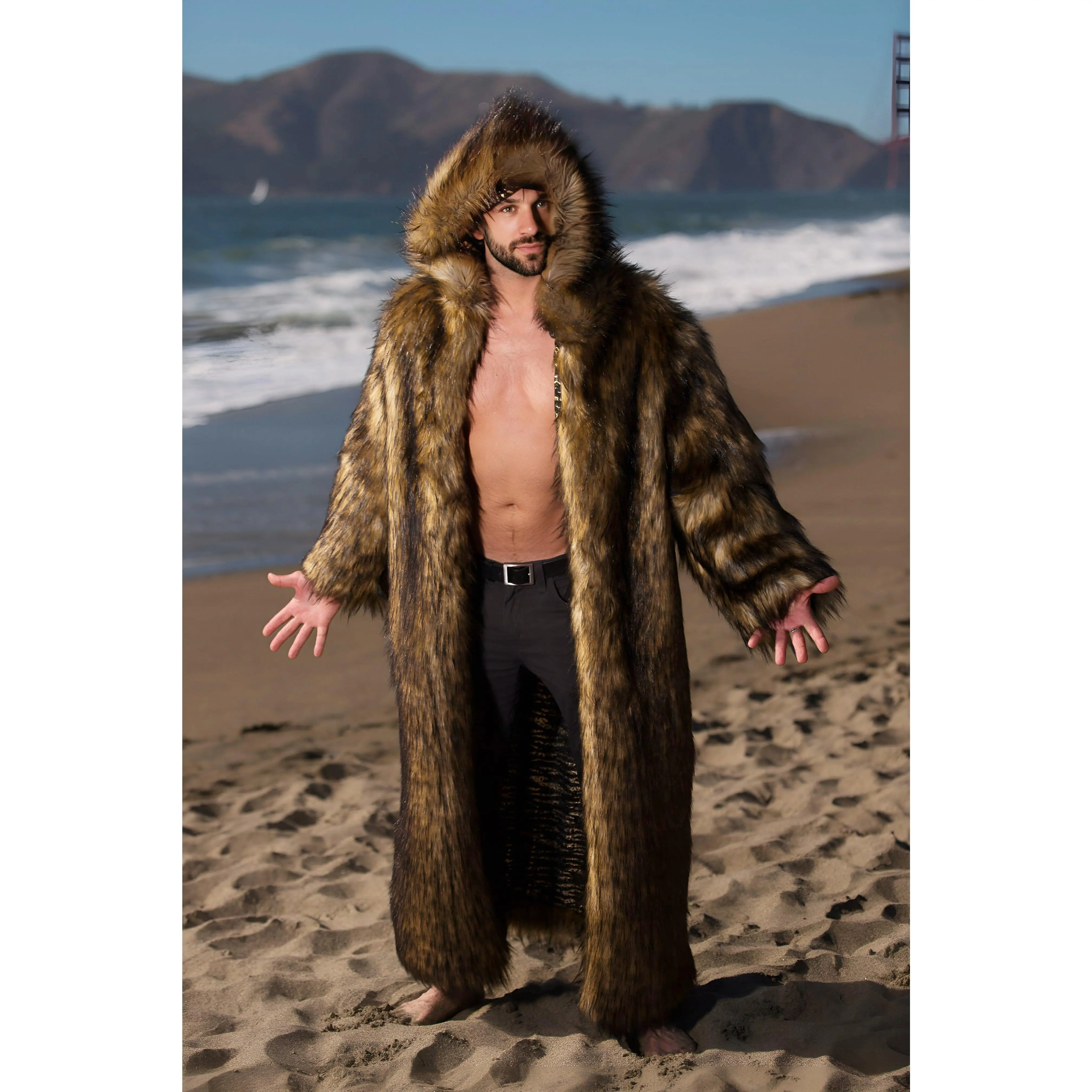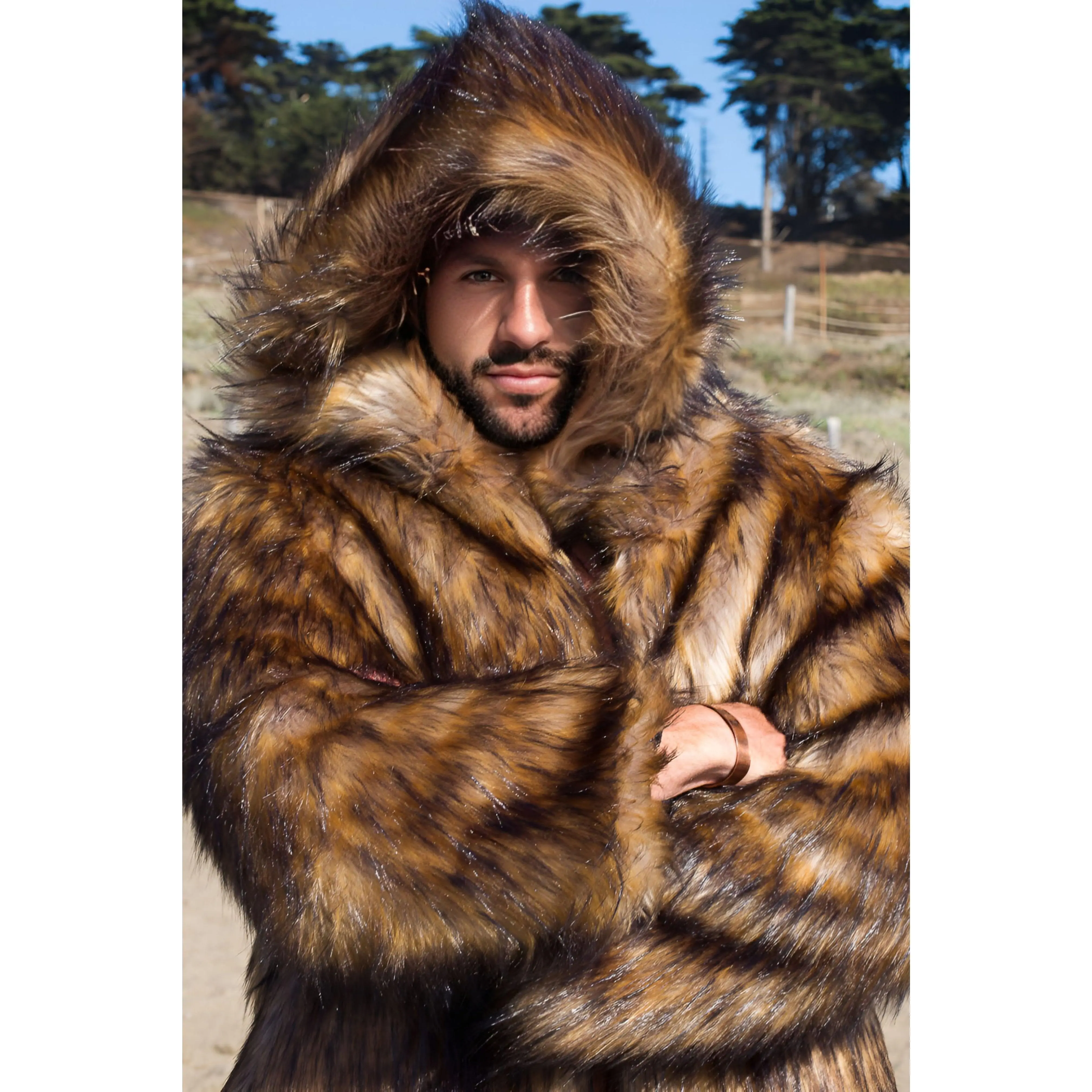 Discover the rugged essence of the wilderness with the "Big Bear" coat, a splendid embodiment of resilience and sagacity. This men's fur coat, inspired by the majestic bear, stands as a timeless testament to strength and intelligence, even as the world evolves. Handcrafted with meticulous care in Los Angeles, this men's bear coat is not just a piece of clothing but a steadfast companion and a haven during those brisk Playa nights. Its long, brown fur design resonates with the spirit of the wilderness, offering both warmth and style.