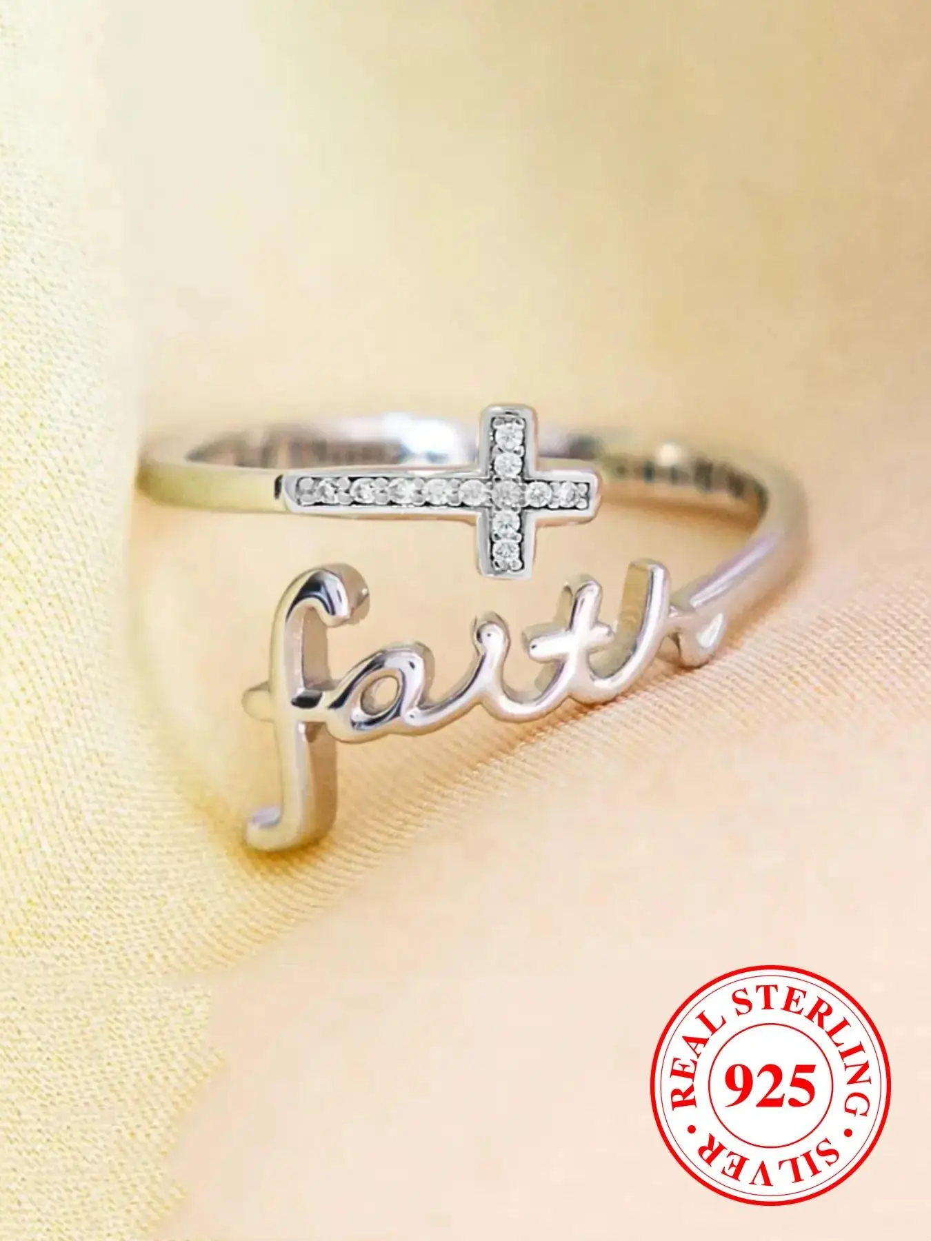 S925 Sterling Silver Cross & Letter Design Cuff Ring, Adjustable Open Ring for Women & Men, Fashion Jewelry Accessories for Daily Wear, with Box, Engraved Ring