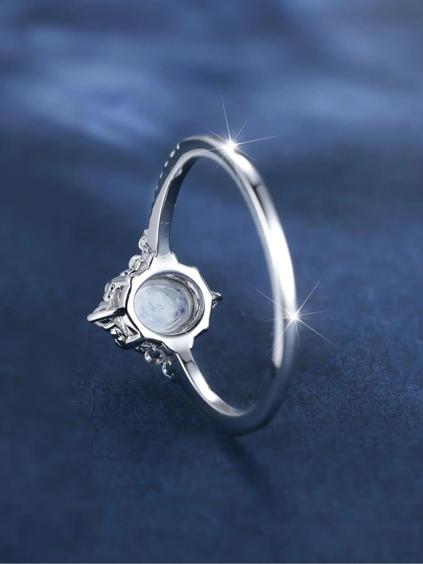 5. S925 Sterling Silver Moonstone Decorated Ring, Dainty Ring, Fashion Accessories for Women & Girls, Trendy All-match & Exquisite Jewelry for Birthday Gift