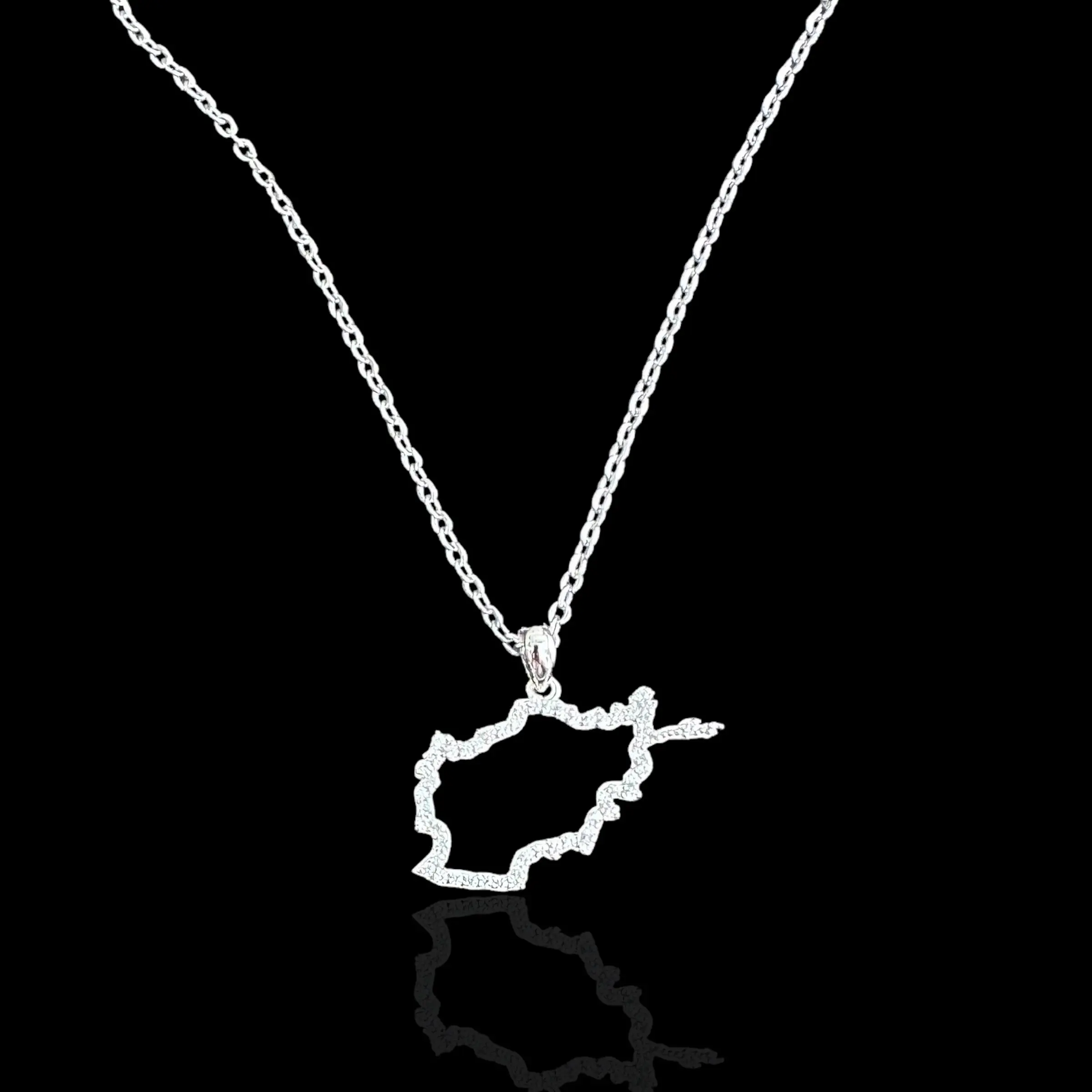 Sterling Silver Afghanistan Map CZ Outline Necklace - Available in 3 Colors