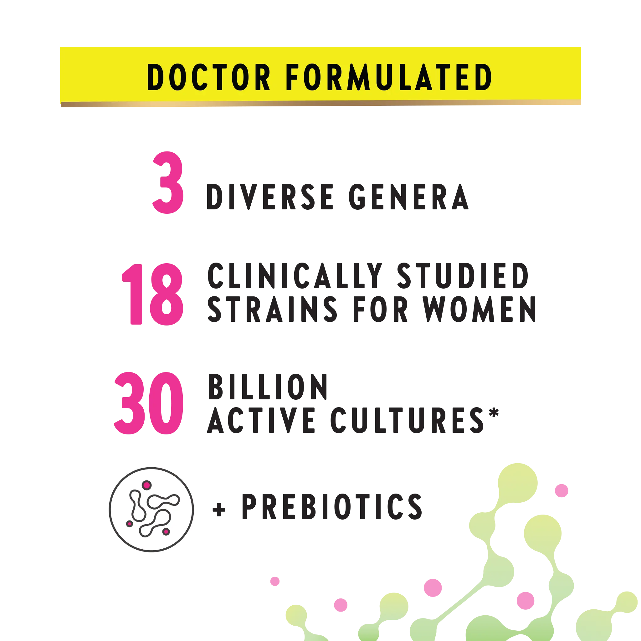 Women's Care Flora is doctor-formulated with three powerful genera Lactobacillus, Bifidobacterium and Streptococcus meticulously selected for their synergistic potential and to help facilitate equilibrium in the gut.