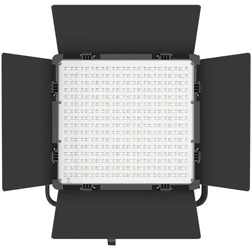 The 13.4 x 12.7" LED panel has a wide color range from a warm 3200K to daylight 5600K to meet any ambient light challenge, match other fixtures, or just for creative expression. The light has high CRI/TLCI ratings of 95/95 to ensure color accuracy. The RGB mode (Red, Green, Blue) with 0 to 100% saturation control offers access to literally millions of color combinations for fine-tuning and customizing the output. You can make adjustments on the fixture but you can also make them wirelessly via WiFi using the free app for iOS or Android. The panel has a wide 120° beam spread that can be narrowed using the four-way barn doors. Simply swing one or more of the barndoor leaves into the path of the beam to keep light from areas you don't want to be illuminated. The panel is dimmable from 0 to 100%. Featuring aluminum construction, the fixture has a yoke that allows 360° rotation for unlimited positioning options.