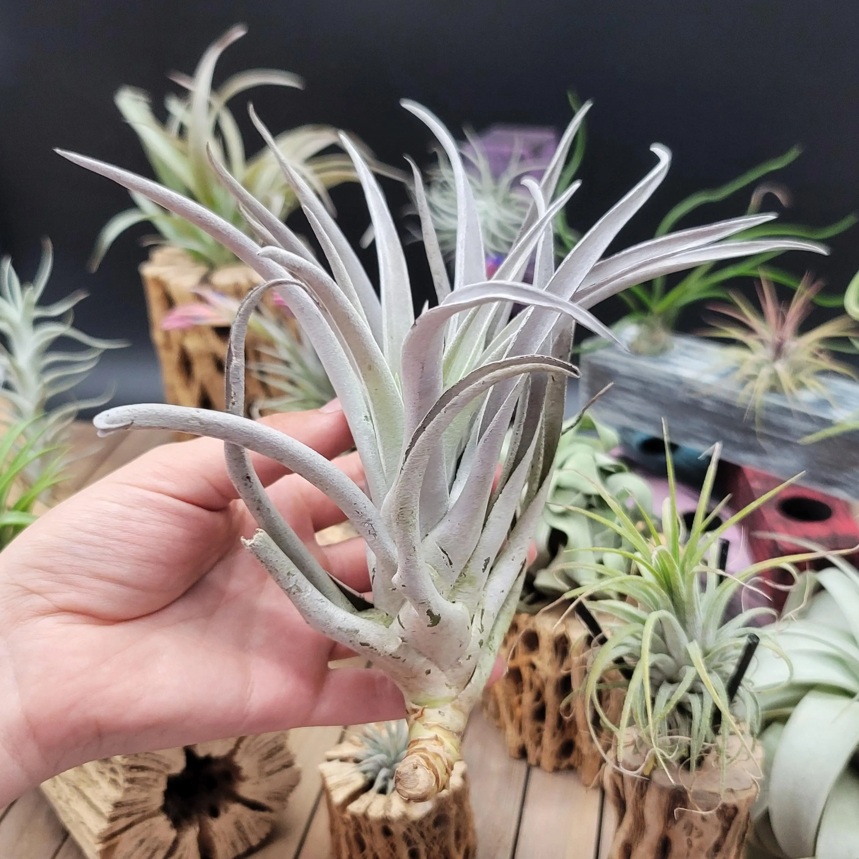 Tillandsia harrisii is more than a beautiful soft aerial plant adding an exotic look to your collection. It also is a good air purifier absorbing harmful elements from the air.