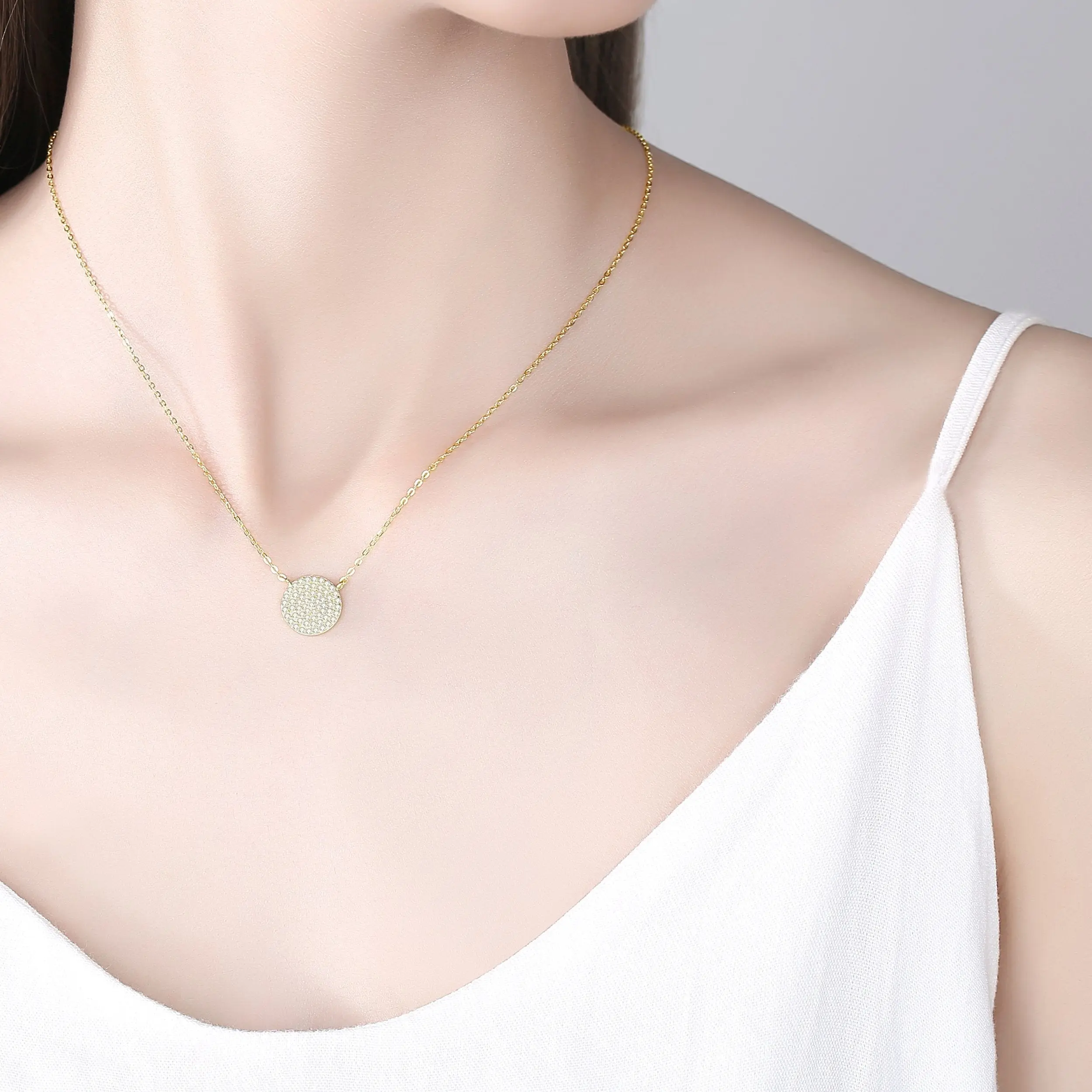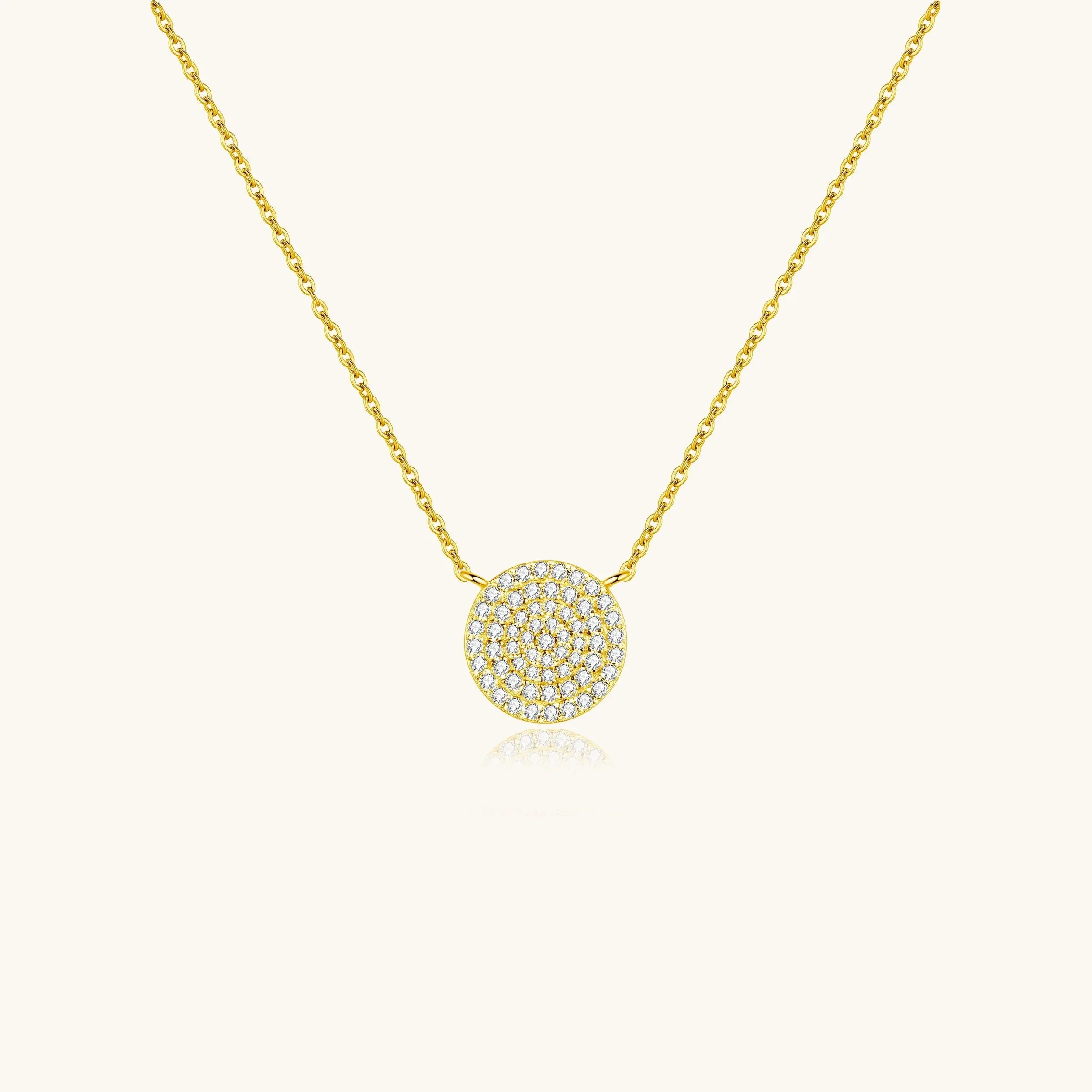 These beautiful necklaces will make the day of the most demanding sights! Carefully crafted with high-quality 925 Rhodium Plated Silver, bearing a beautiful design, these exclusive necklaces from our new collection will become a great present for your loved ones. The Pave Circle Disc Necklace features a stunning array of cubic zirconia stones, adding a touch of sparkle and elegance to any outfit.