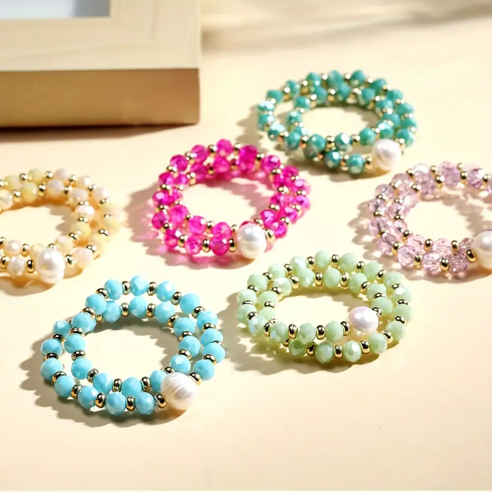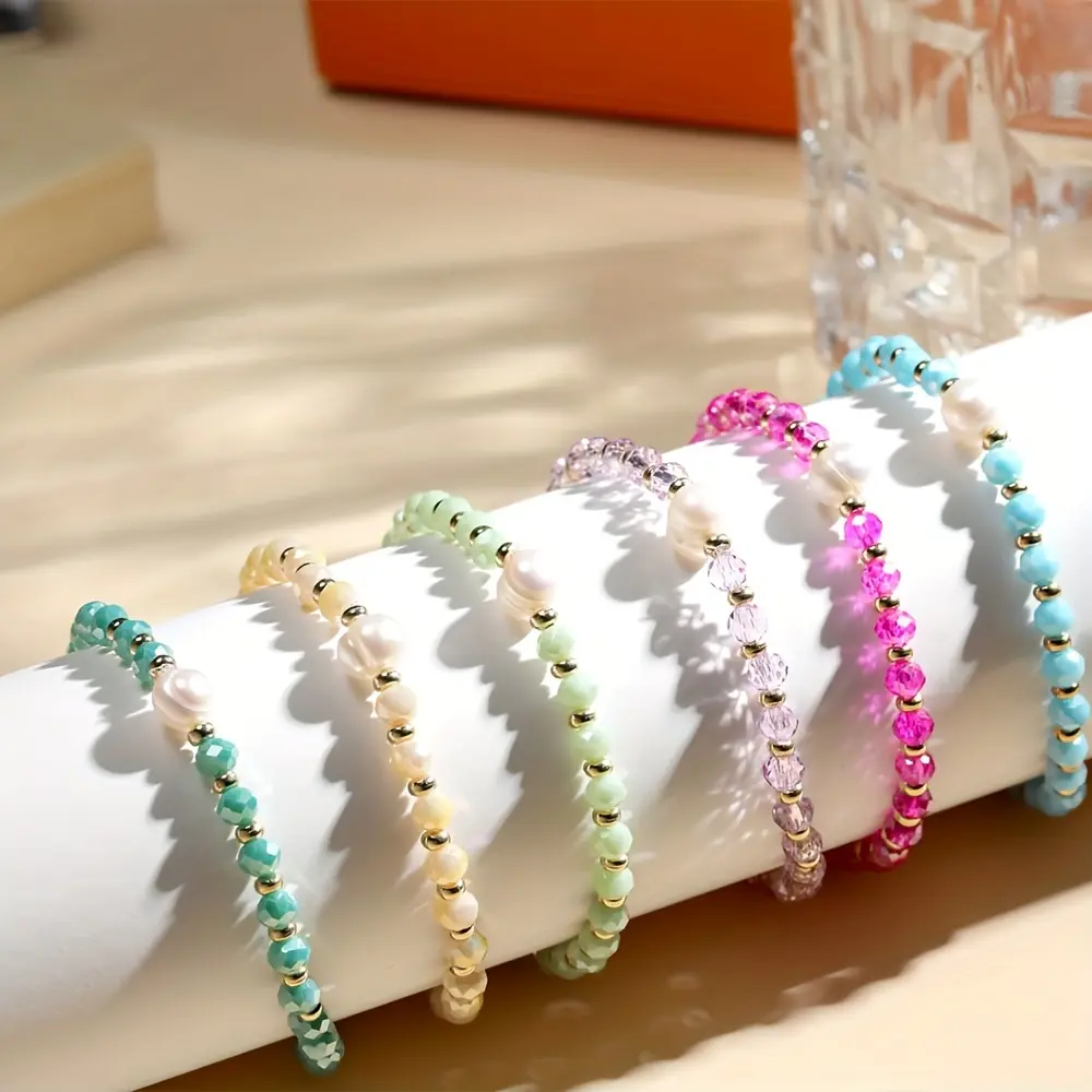 6Pcs Jewelry Simple New Fashion Children Teenagers Women's 6-Piece Glass Beads Natural Pearl Bracelet Set Fashion Popular Jewelry Girl Bracelet Bracelet