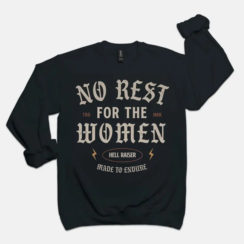 No Rest For The Women Front Crewneck, Womens rights feminist girl power graphic sweatshirt, vintage inspired sweatshirt