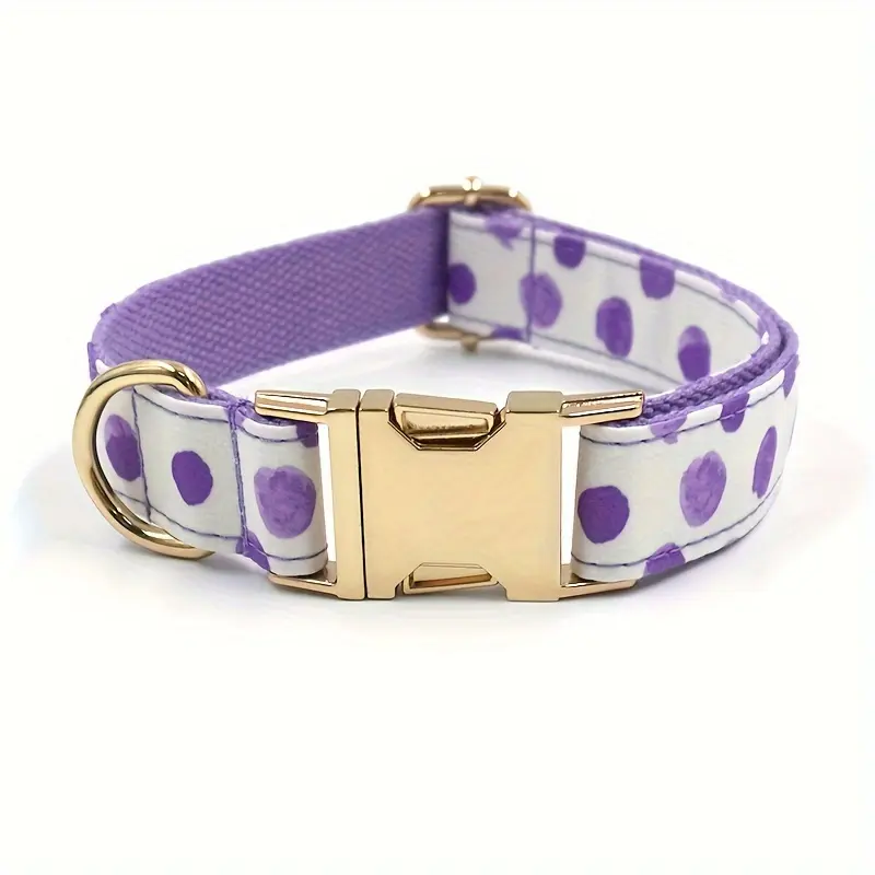 [Personalized] 3pcs/set Light Purple Polka Dot Adjustable Pet Dog Collar, Leash Bow Tie Set, Free Laser Engraved Dog's Name, And Owner's Phone Number, Wedding Gift For Dogs Customized