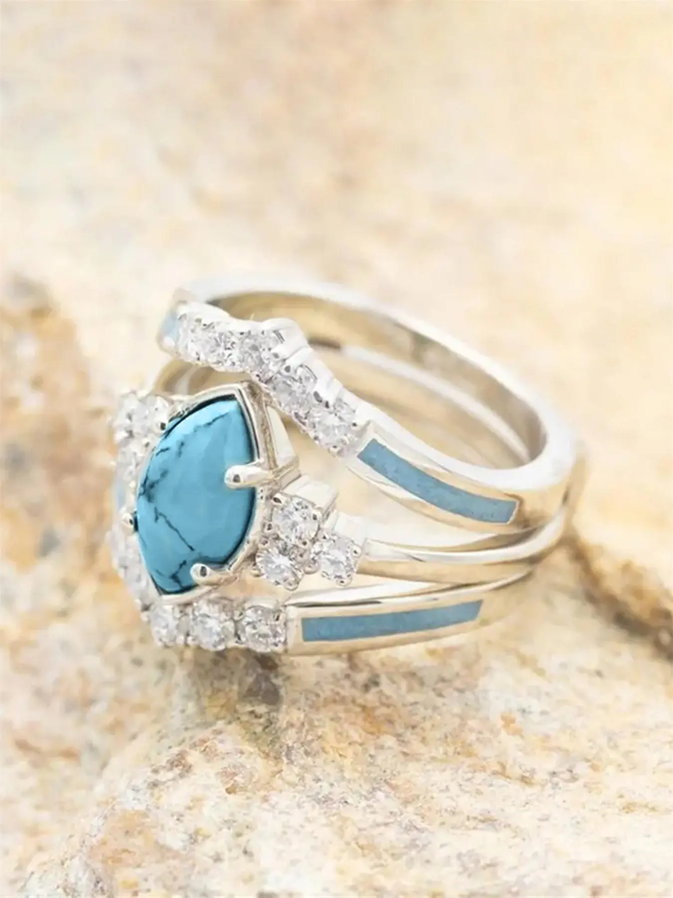 sterling silver fashion Turquoise Decor Ring 💍 #tiktokshop #tiktokviral #tiktokmademebuyit