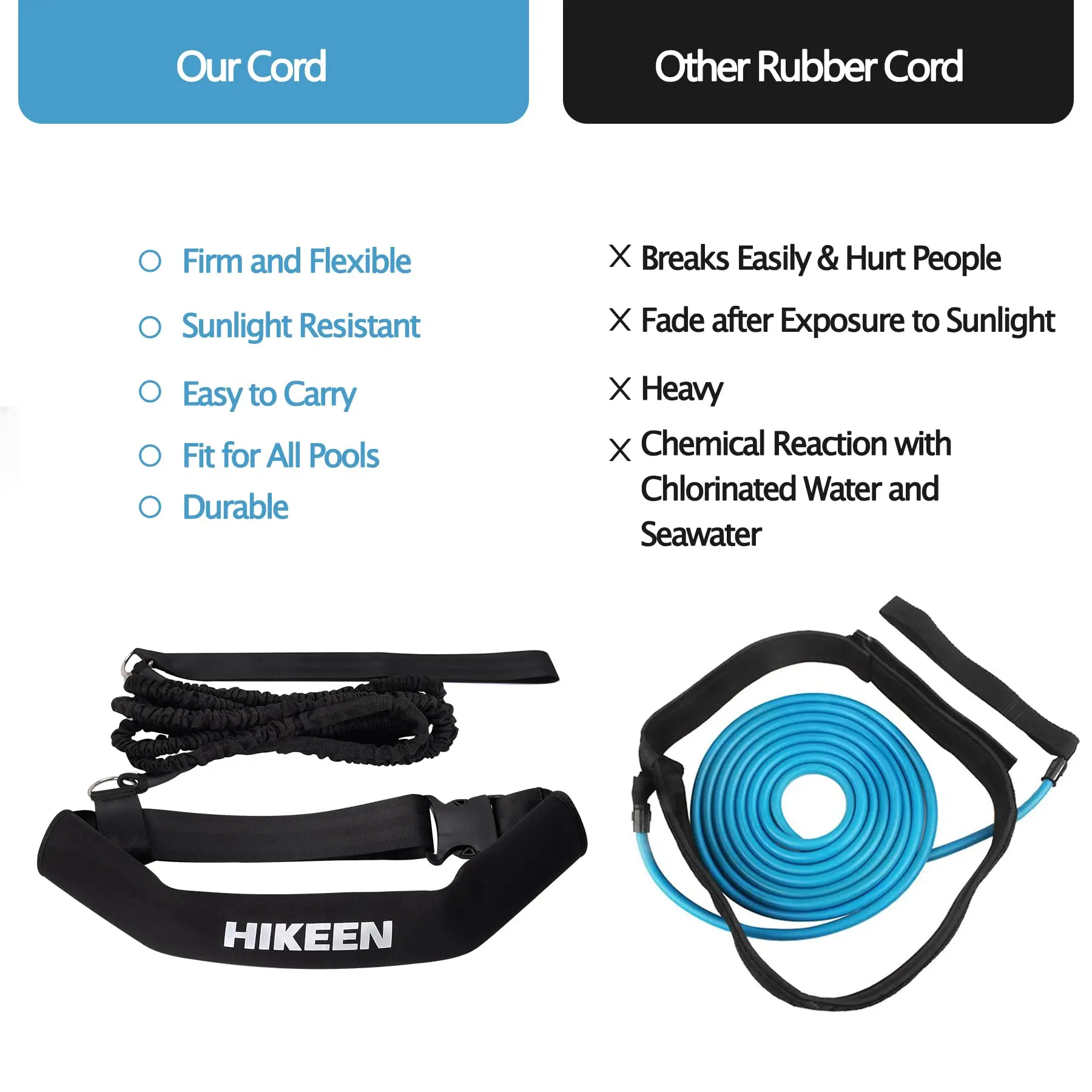 ·Easy to use - attach bungee to poolside object, secure neoprene belt around waist up to 45 inches, & start swimming in place