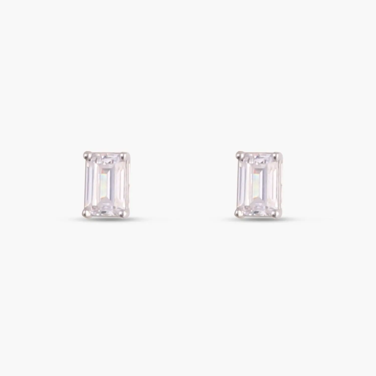 Classic Emerald cut CZ Solitaire Silver Stud Earrings, Mini