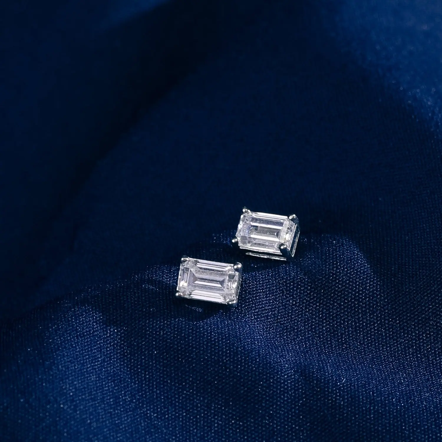 Each earring boasts a single, mesmerizing emerald-cut 4X6 mm cubic zirconia stone, meticulously set to showcase its brilliance. Crafted for timeless elegance, these earrings are perfect for adding a touch of sparkle to any ensemble, whether for a special occasion or everyday wear. Experience understated luxury with our Emerald Cut Solitaire Stud Earrings—a versatile and essential addition to your jewelry collection.