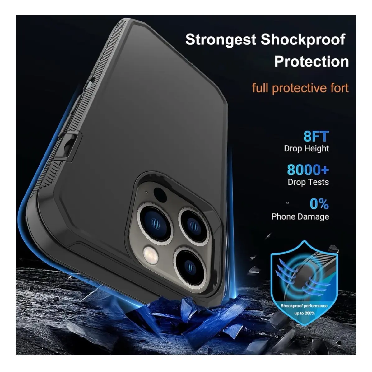 Ever worried about dropping your iPhone and shattering the screen? Meet your phone's new best friend: this Defender case with heavy-duty shockproof drop protection. Built rugged with a 3-layer military tough design, it guards your device from falls up to 8 feet—tested over 8000 times to ensure zero damage. Whether you're clumsy or just want peace of mind, this case wraps your iPhone in 360° full body protection. Plus, it’s snow-proof and drop-proof, ready for any adventure. Each purchase includes one HD screen protector to keep your touchscreen crystal clear and scratch-free. Available in a variety of cool colors and compatible with many Apple iPhone models, this case blends durability with style. Inside the box, you get the Defender case plus the screen protector, so you’re fully equipped to protect your phone right out of the package. Ready to give your iPhone military-grade protection? Grab this rugged Defender case and keep your phone safe no matter where life takes you.