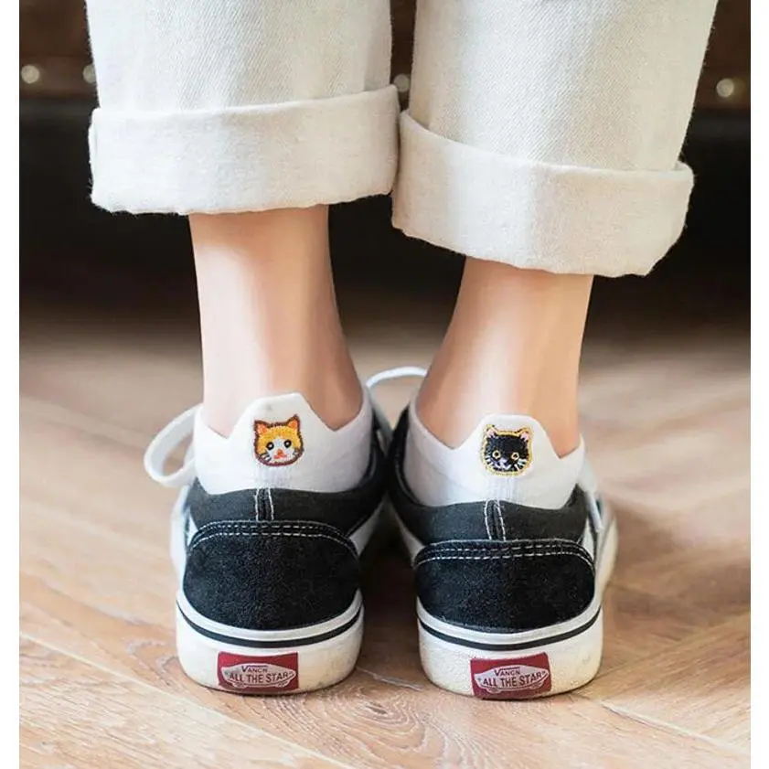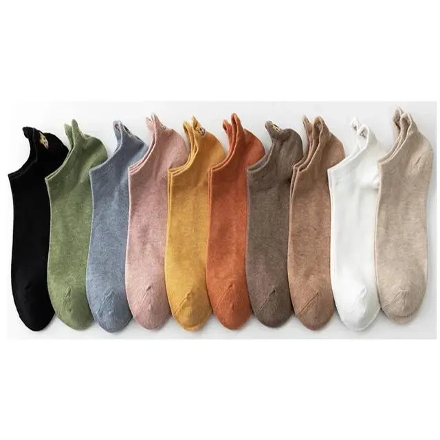 10 Pairs Pack Kawaii Socks Women Happy Ankle Funny Cartoon Embroidery Cat Harajuku Accessories Short Lot Gift Paws Claw