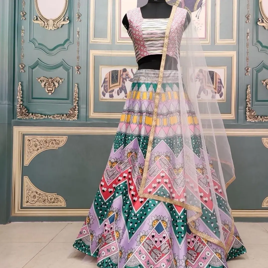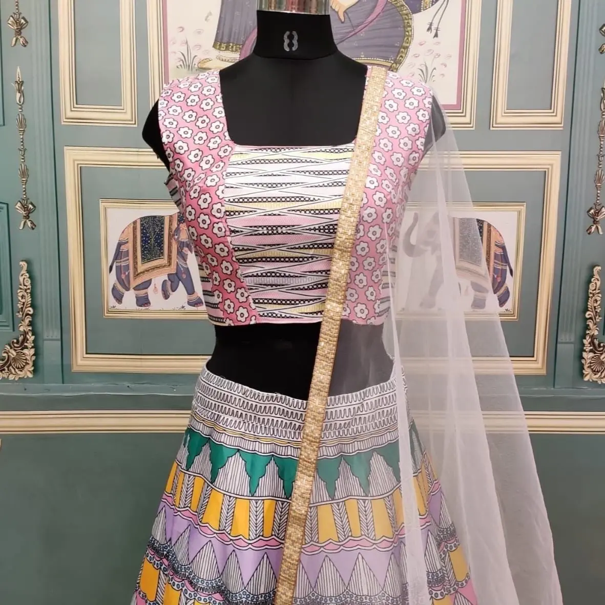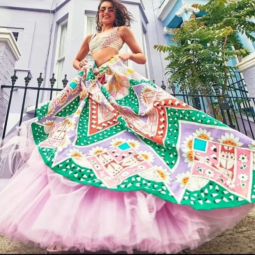 The L-1005 Bohemian Lehenga Set is a must-have for anyone who wants to add a touch of color and vibrancy to their wardrobe. The intricate patterns and lively hues make it a standout piece that is sure to make the wearer shine at any festive occasion. The set is custom-made to suit the wearer's style, ensuring a perfect fit. The premium quality fabric used in the set provides ultimate comfort and elegance, making it perfect for any celebration.