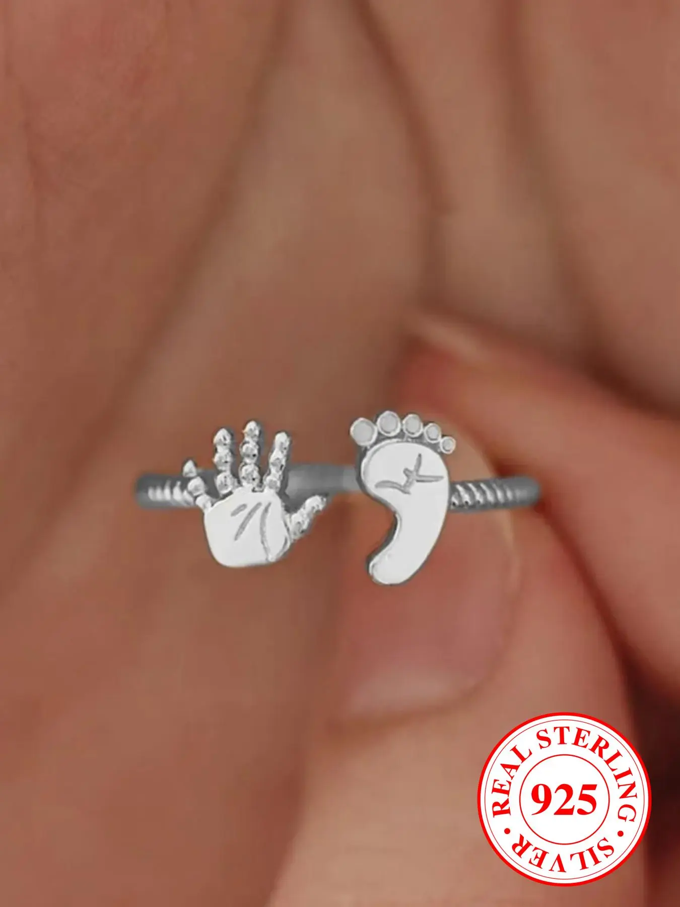 5. 925 Sterling Silver Cute Hand & Foot Design Cuff Ring, Adjustable Open Ring, Fashion Rings, Fashion Jewelry Accessories for Women & Girls