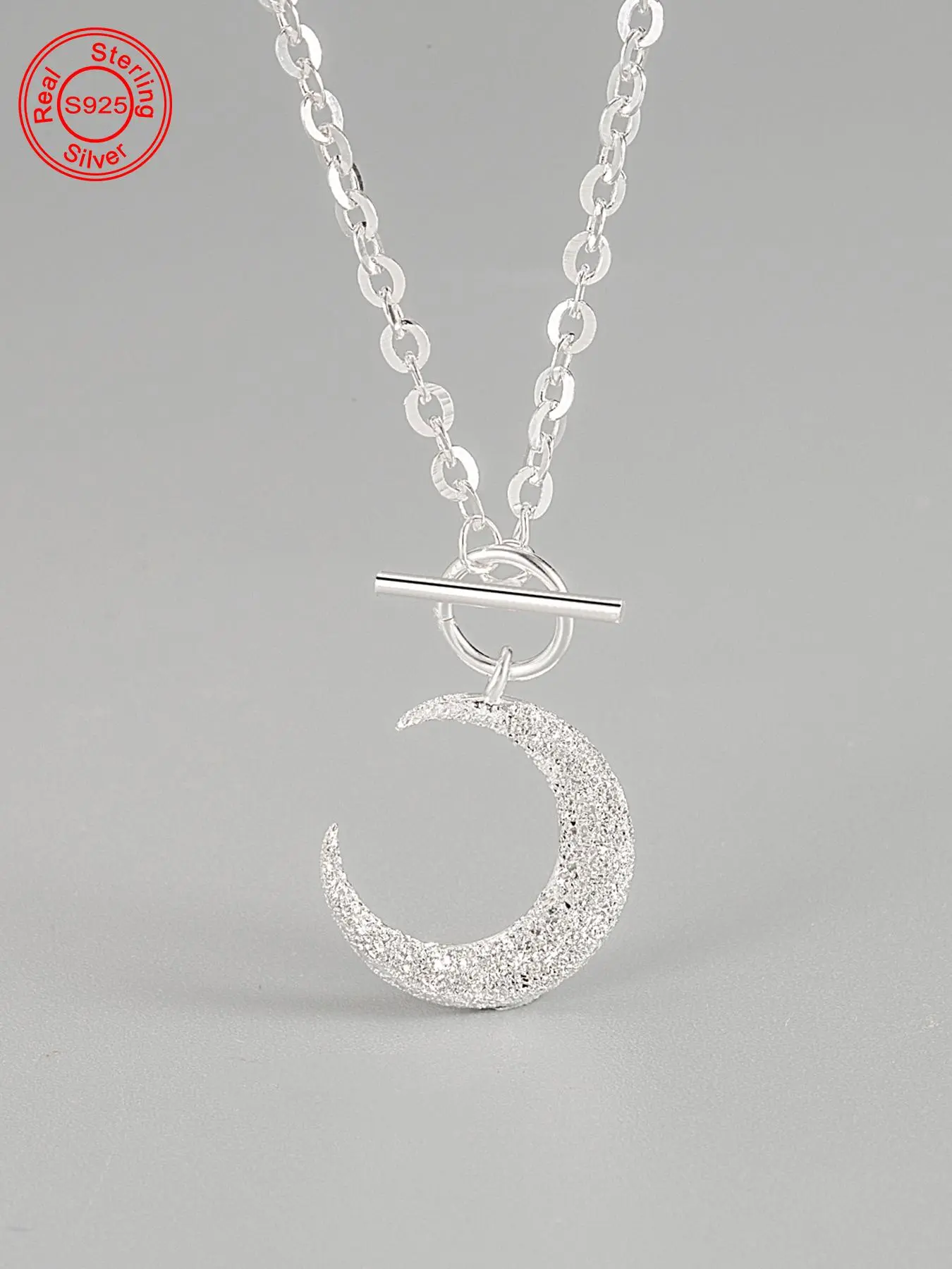 925 Sterling Silver Fashion Moon Design Pendant Necklace for Women & Girls, Fashion Jewelry for Party, Daily Decor, Trendy Exquisite Jewelry for Birthday Gift