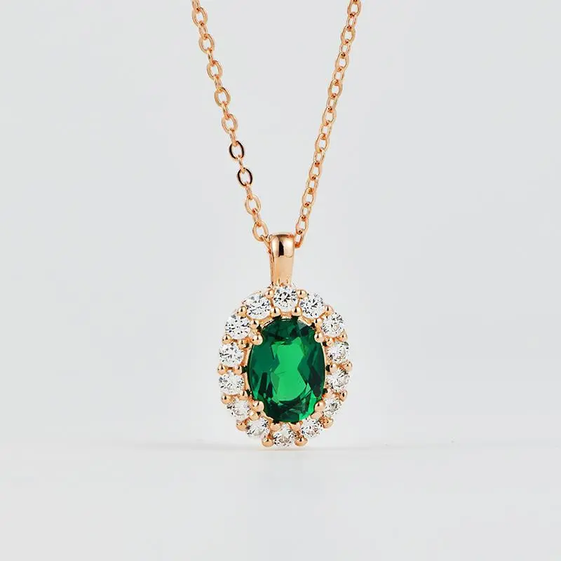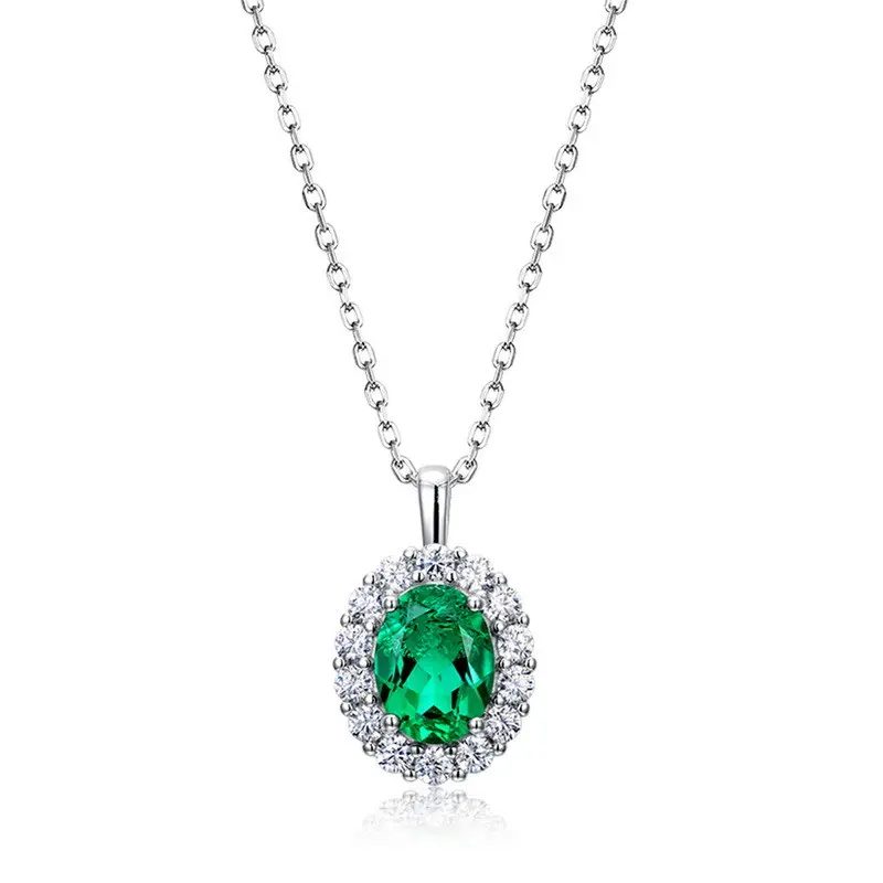 Color: thick silver platinum cultivated emerald pendant with chain, rose gold-emerald pendant with chain (NL004465)