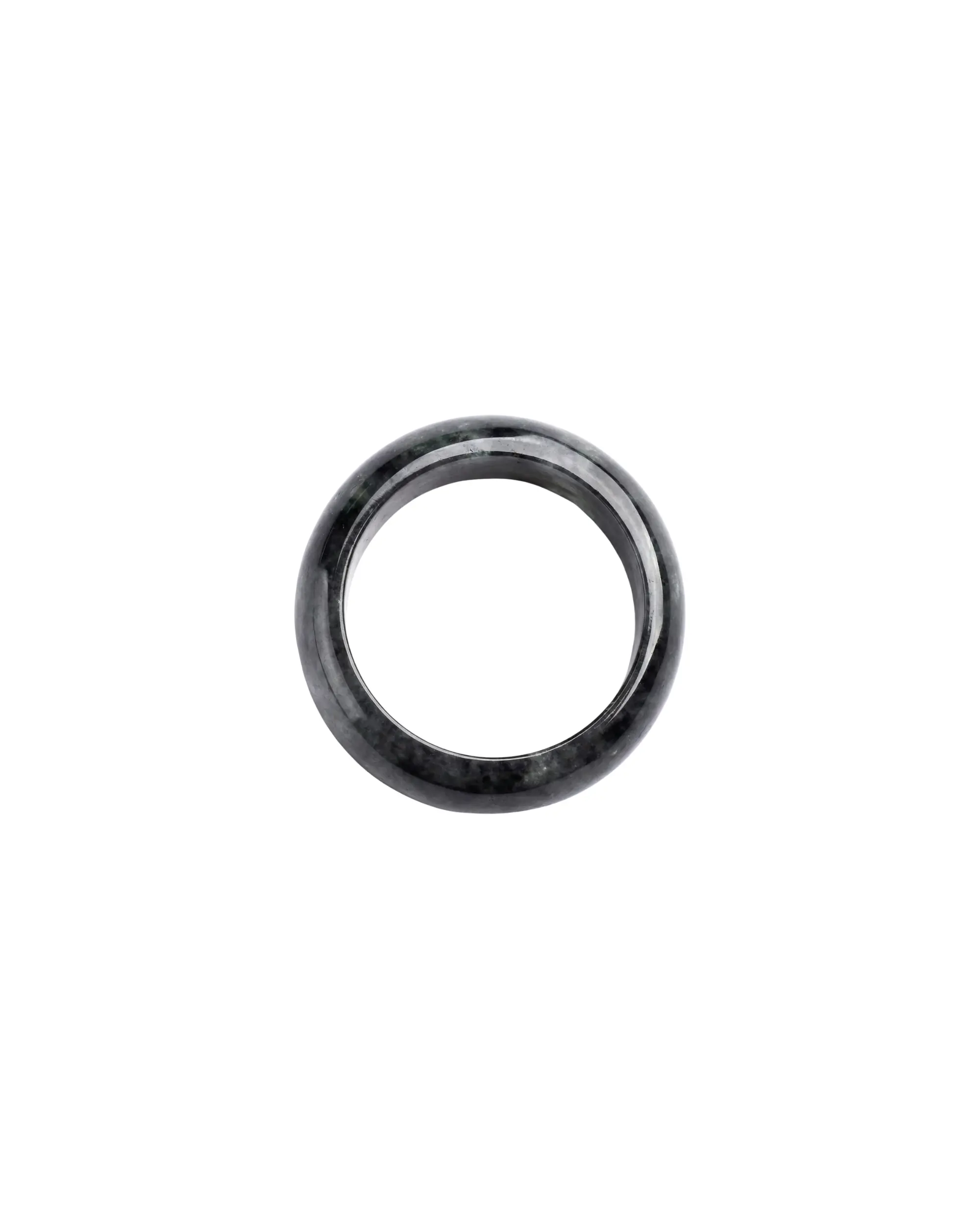 Oreos. Klondike bars. The sesame ring reminds us of all the yummy foods we’ve had in black and white. The black dots are iron deposits remaining in the white jade. It’s how nature leaves its beautiful traces in time.