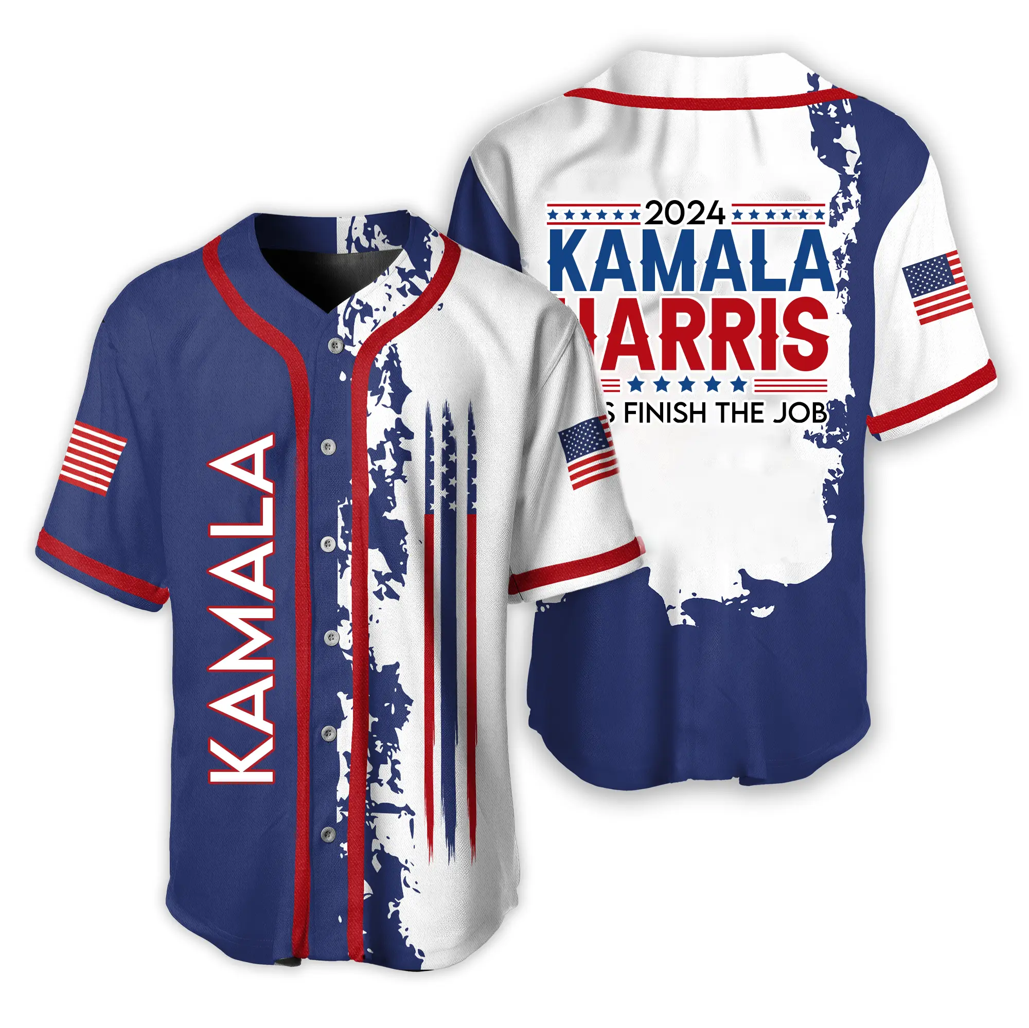 Kamala Harris 2024 Baseball Jersey, Let's Finish the Job Jersey, Madam President Kamala Harris Shirt, 2024 Election Shirt with Vintage Style, Button Down shirt