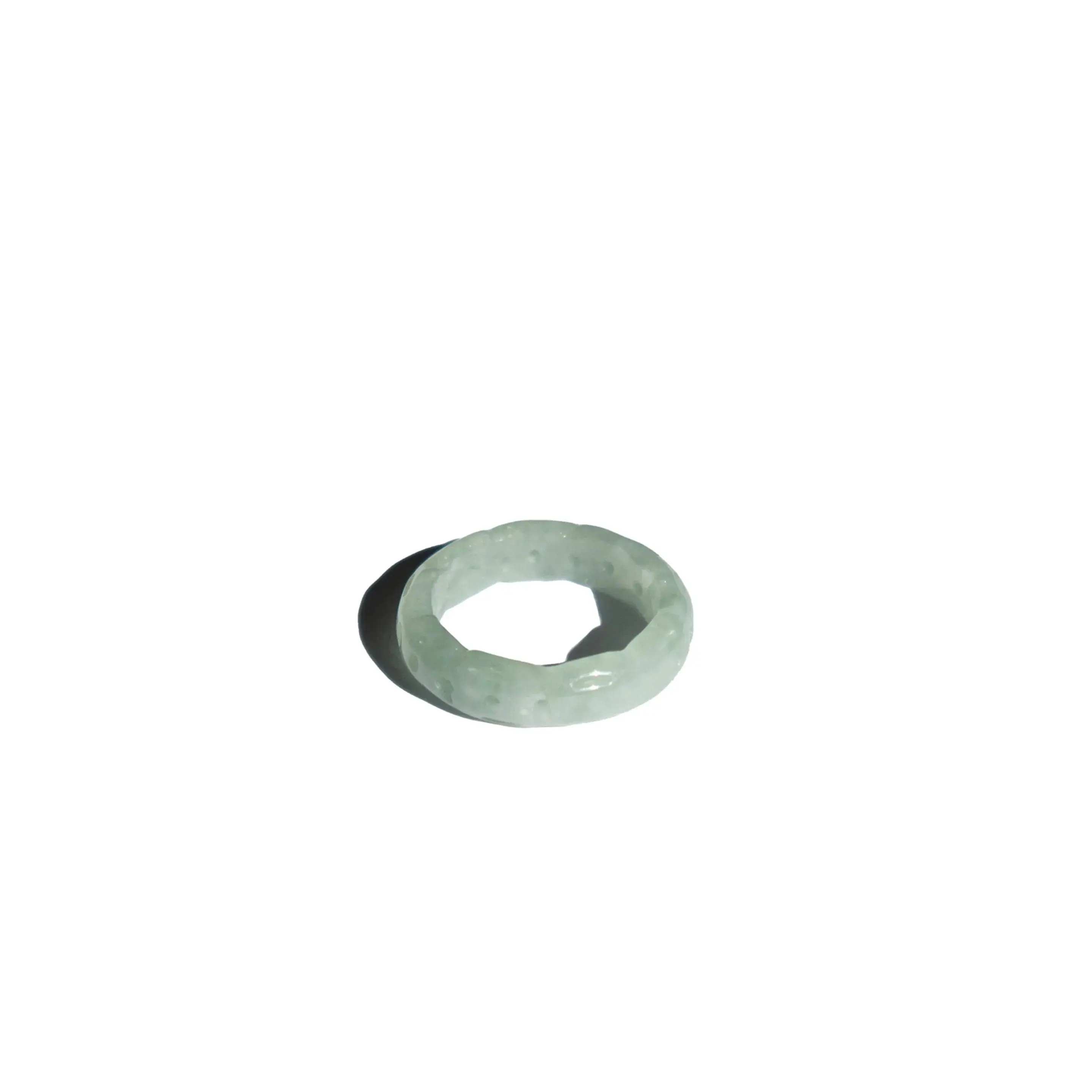 This Weave ring is hand-crafted from off-white jadeite, giving it an elegant and intricate "woven" look.