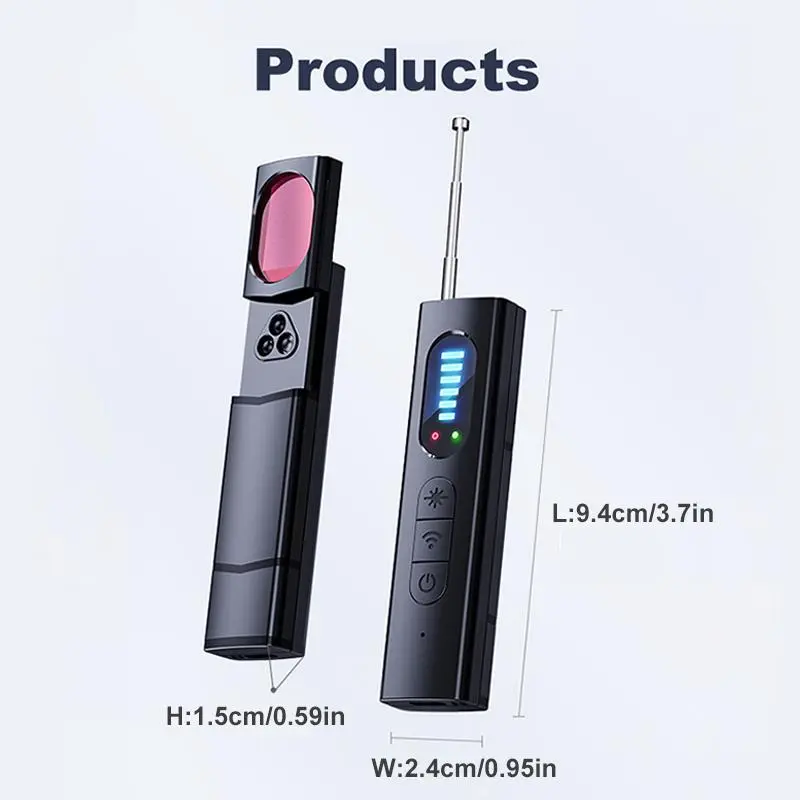 Worried about hidden cameras or GPS trackers invading your privacy while traveling or at work? This Hidden Camera Detector with LED light and GPS tracker detection has got you covered. Whether you're checking a hotel room, office, or any unfamiliar space, this handy gadget uses laser, infrared, and radio wave detection to expose concealed devices. With five sensitivity levels, you can customize scans to fit any environment, making it super versatile.