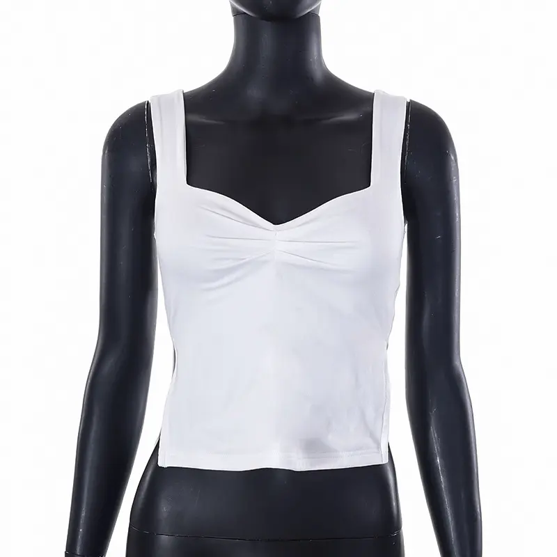 European and American Women's Clothing Summer Ins New Solid Color Square Collar Sling Pleated Backless Underwaist Top T-shirt for Women
