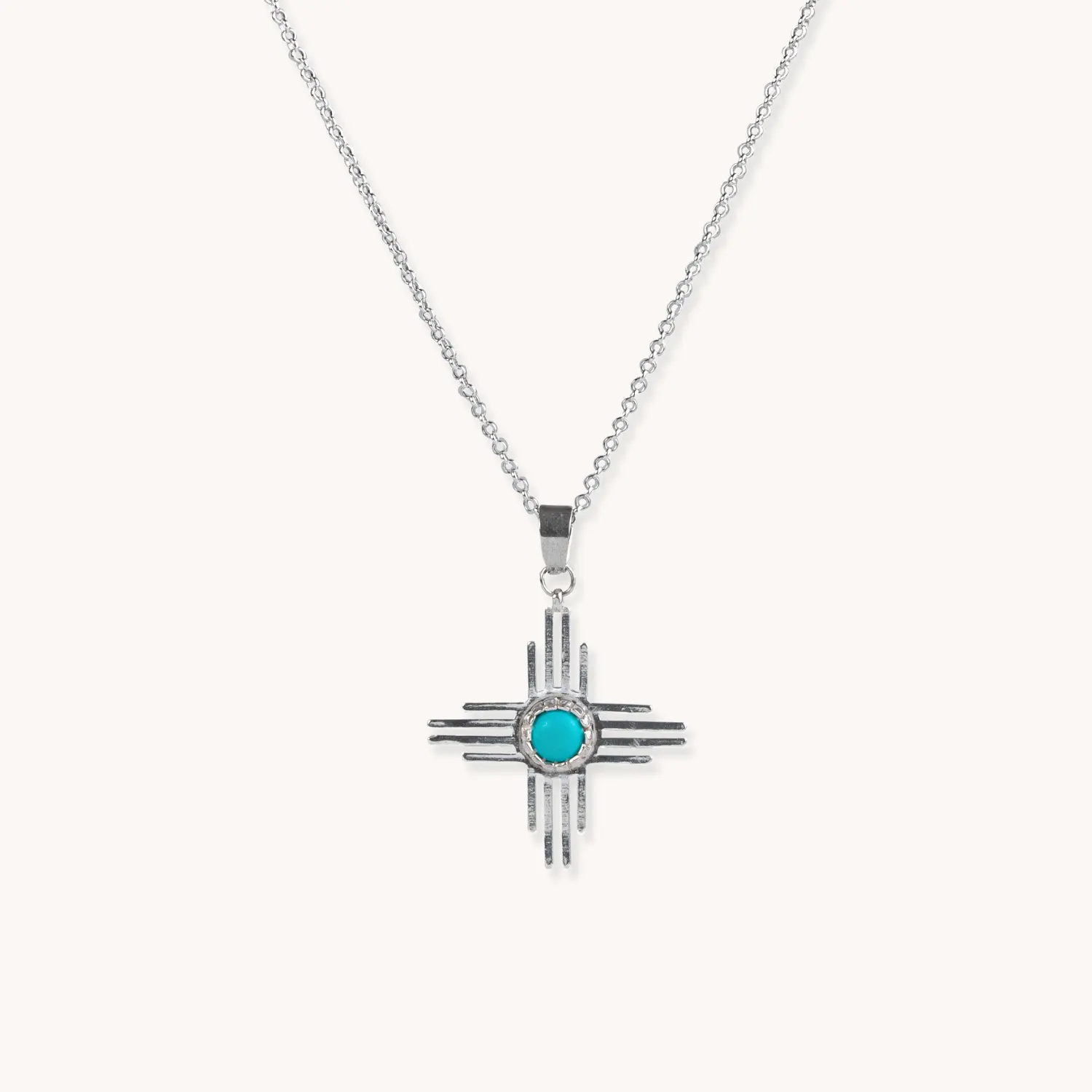 I love my Zia pendant with a turquoise stone! Perfect size, not too big, not too small. I would have loved to give it five stars, but I found the chain to be too "dainty". Not only did I fear it might break easily, but the clasp was so small I literally was unable to use it, so I simply used a larger snake chain and it looks fabulous.