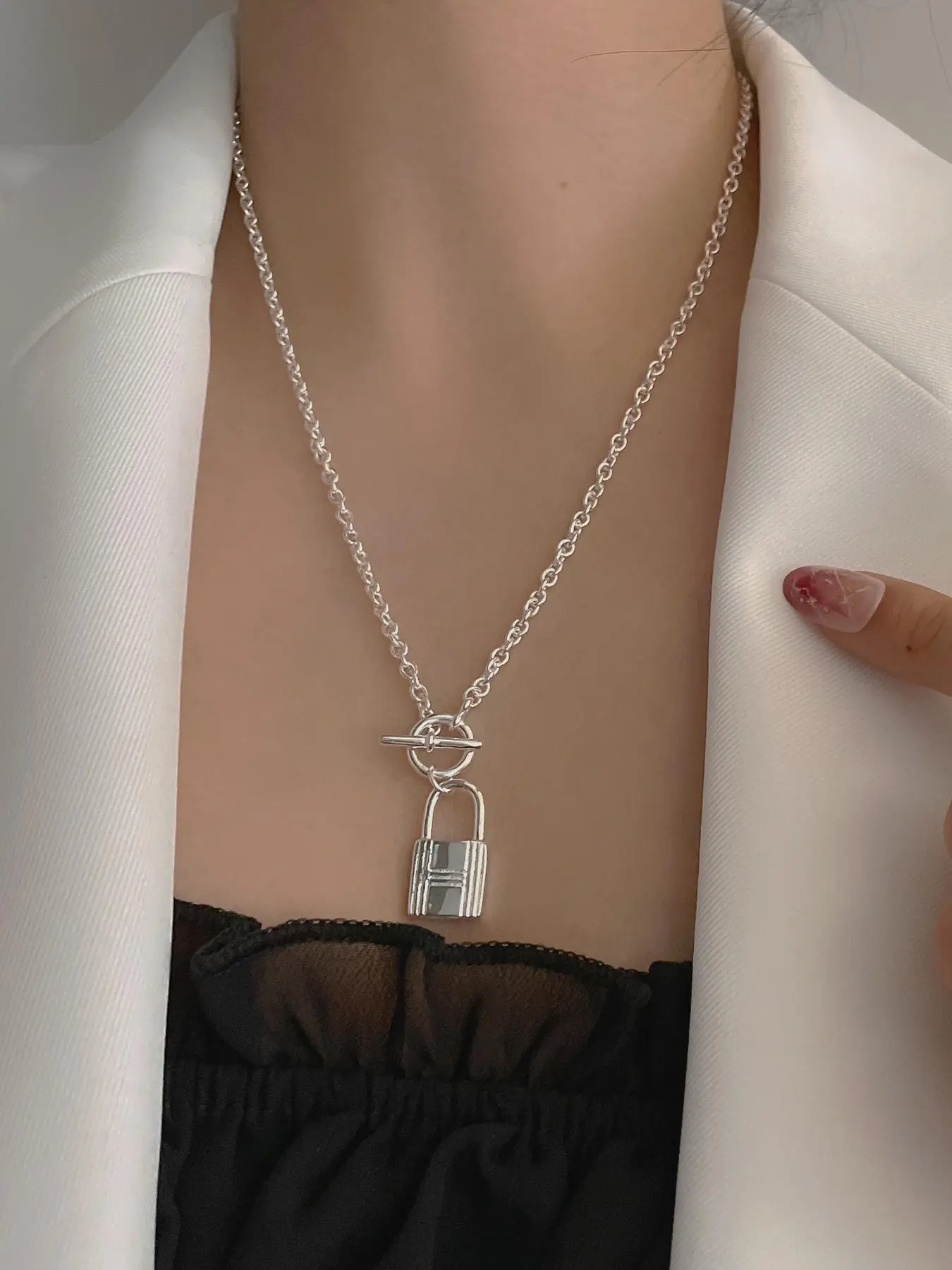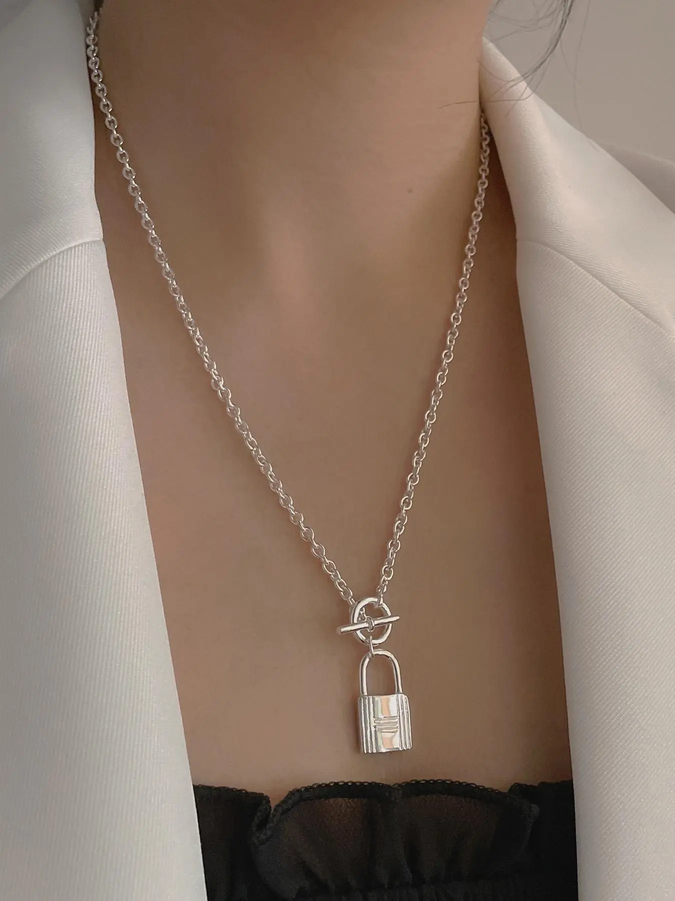 925 Sterling Silver Creative Lock Pendant Necklace, Fashion OT Buckle Necklace for Party Clothing Decor, Trendy All-match & Exquisite Jewelry for Birthday Gift, Stylish Necklace, Accessories for Women, Decoration Necklace