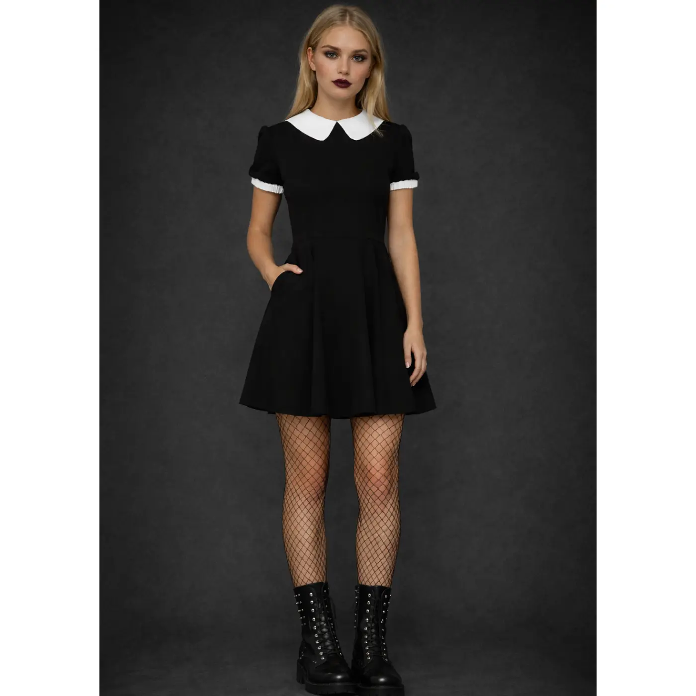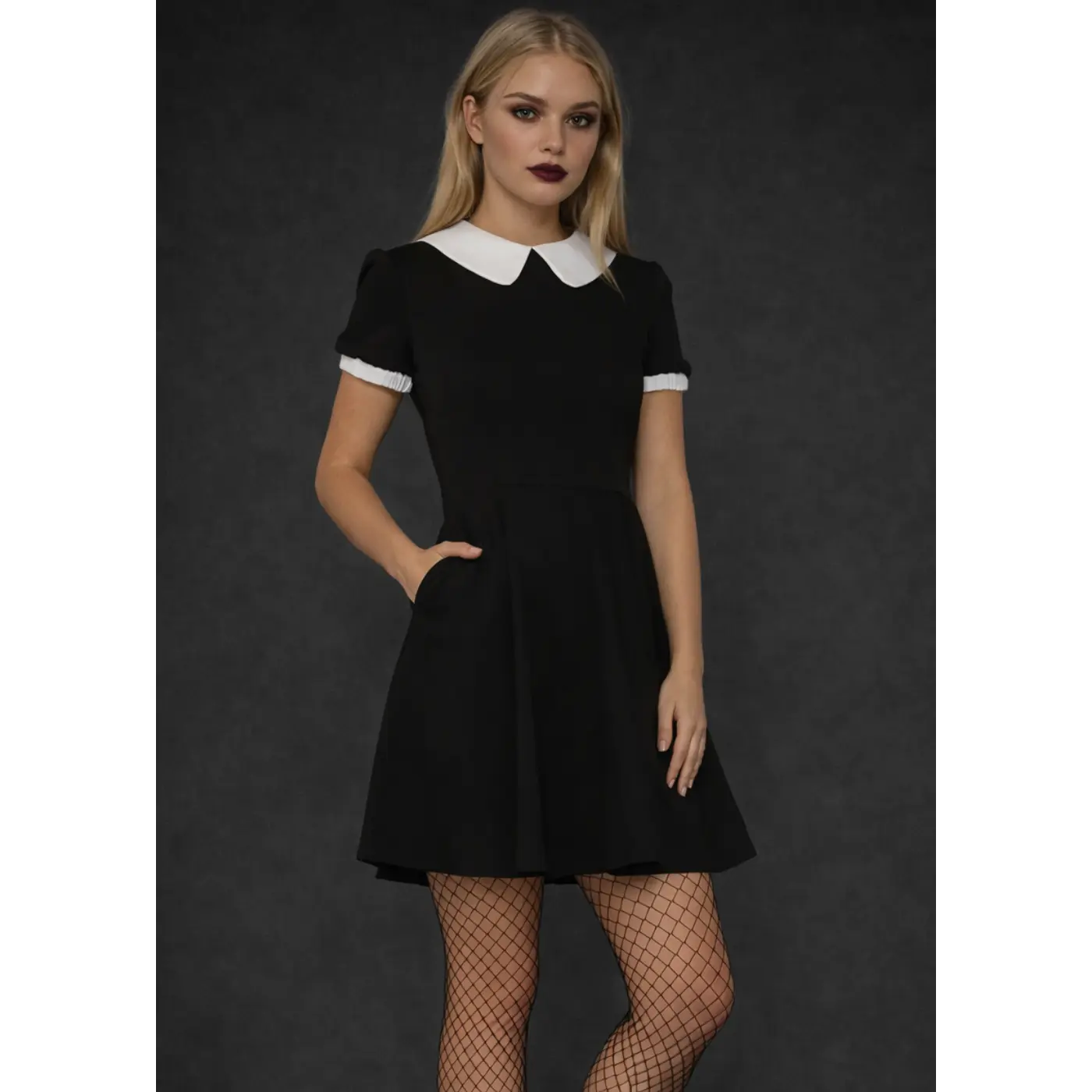 Channel your inner Wednesday Addams when you slip on this collar goth dress!