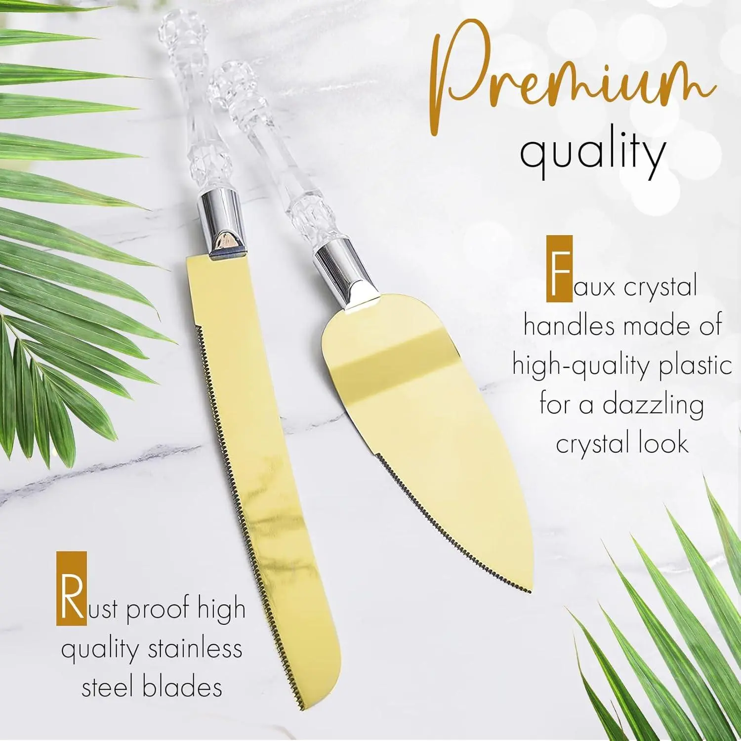 🍴 SUPERIOR QUALITY DESIGN: The wedding knife and cake server set is made with carefully selected materials, featuring high-grade 402 stainless steel blades. This set of tools is not only useful for cutting and serving cakes, pastries, pizzas, pies, and other treats at weddings and other indoor and outdoor events, but it also doubles as a wedding cake knife and server set.