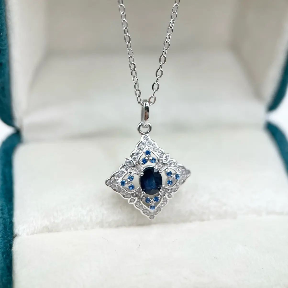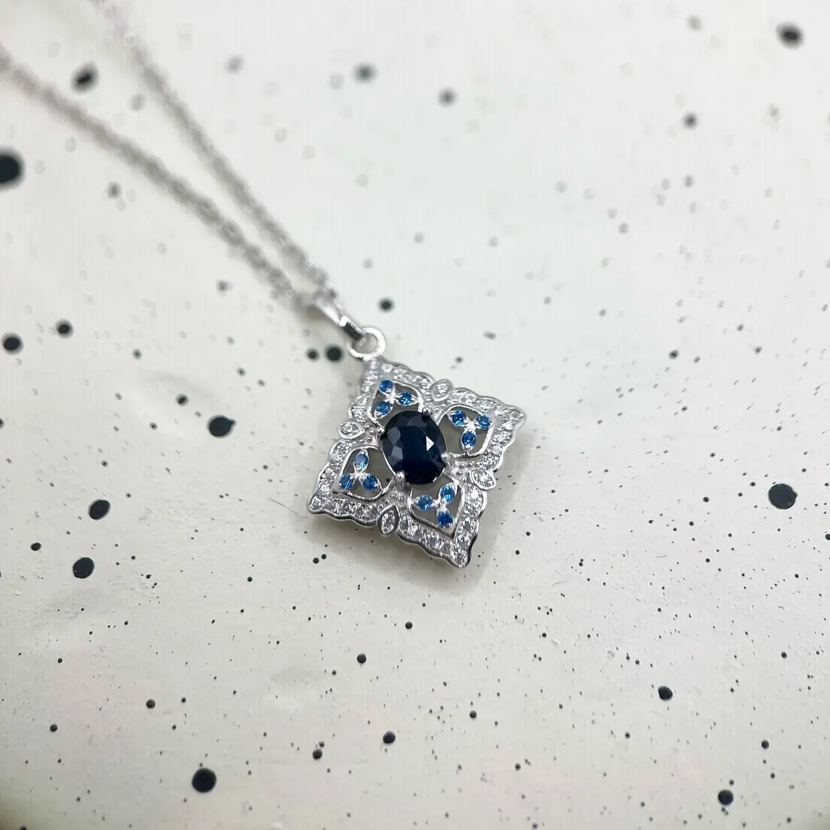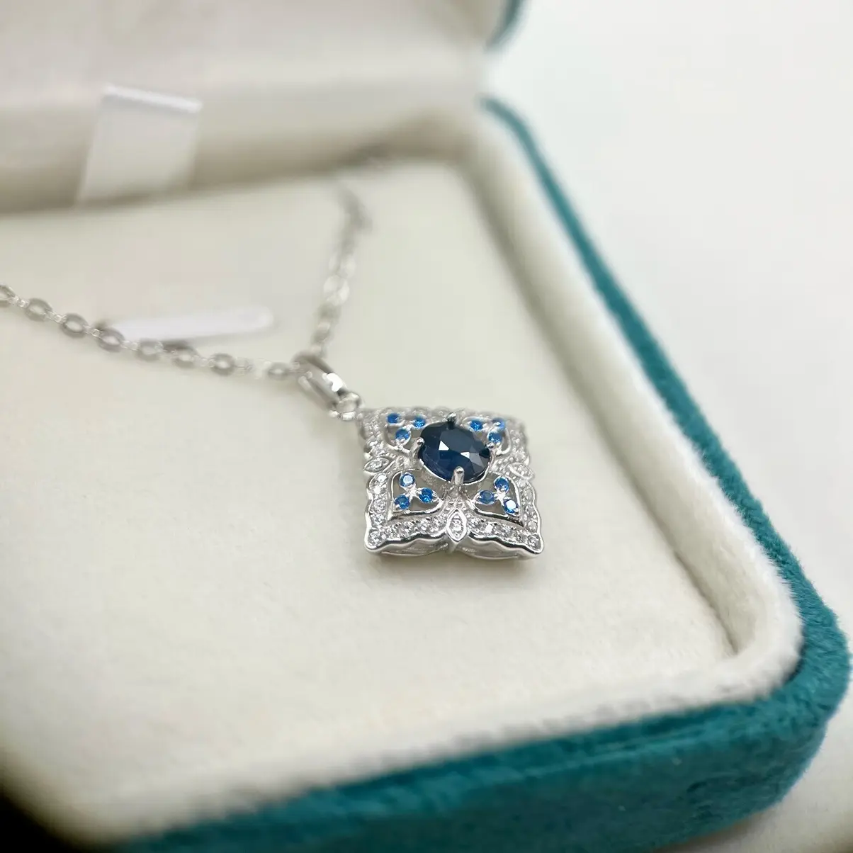Natural Blue Sapphire Necklace with S925 Sterling Silver, September Birthstone, Gift for her