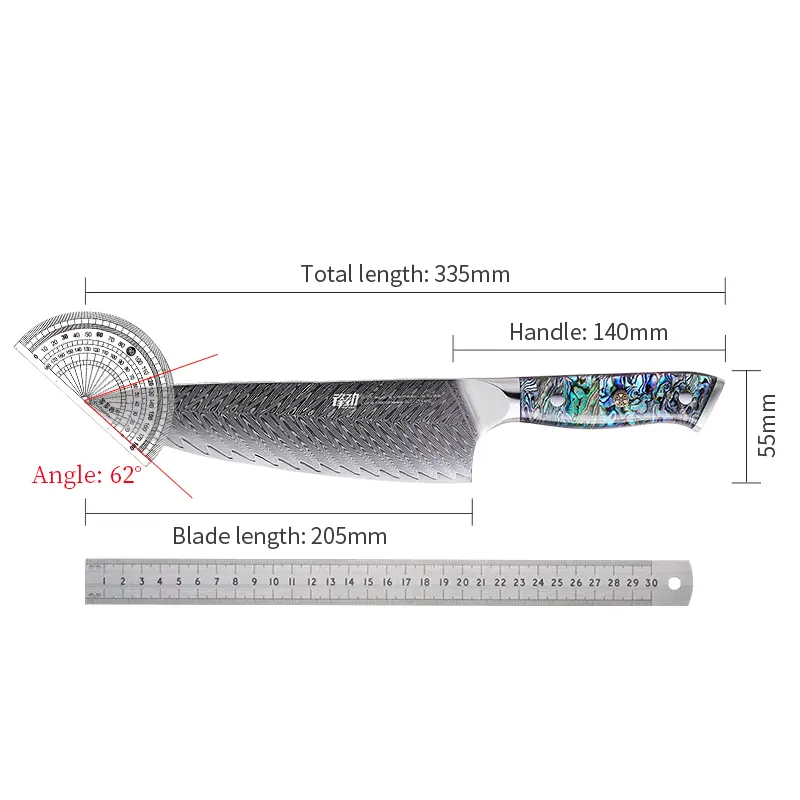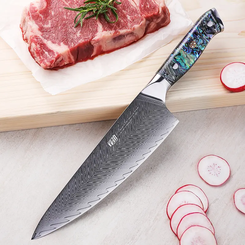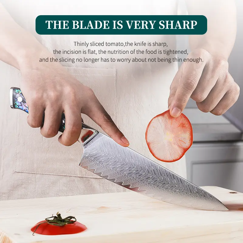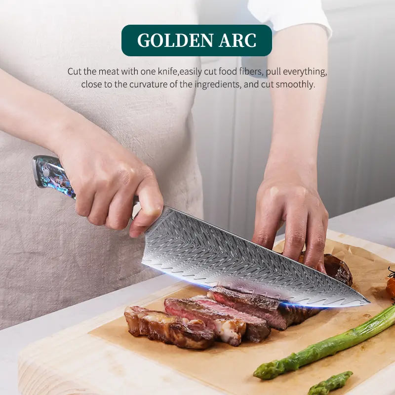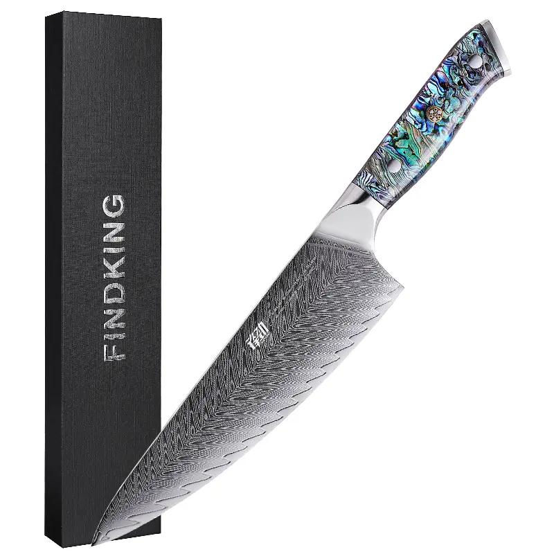 FINDKING 8 Inch Gyuto Chef Knife, Professional Japanese 67 Layers Damascus Steel Kitchen Knife, Resin Abalone Shell Handle, Razor Sharp Professional Meat Cutting Knife with Gift Box for Family, Restaurant, Cutting Vegetables, Meat and Fruits for Kitchen