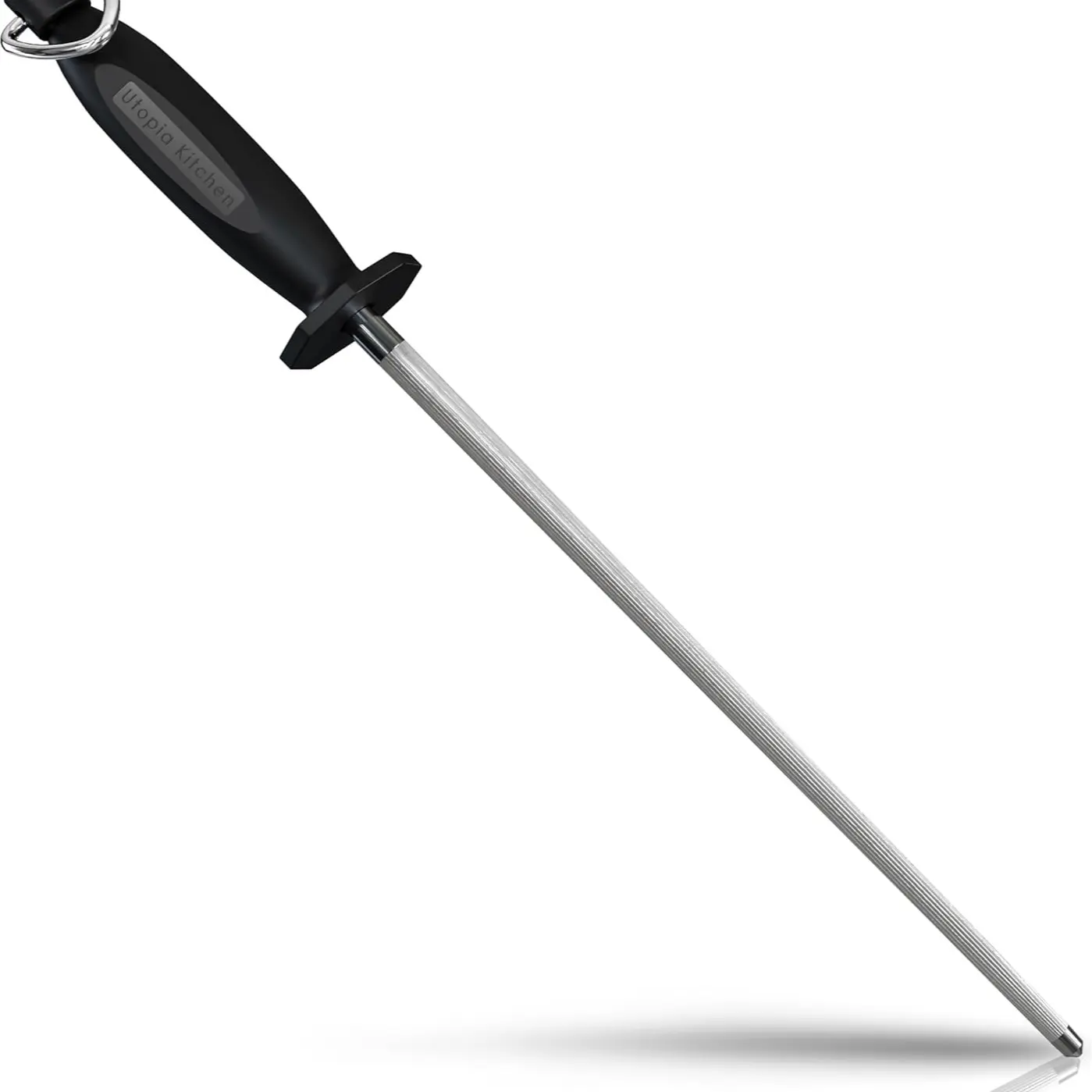 knife sharpening steel rod is for all types of knives, including kitchen, household, sporting and pocket knives; sharpens standard and serrated edge knives
