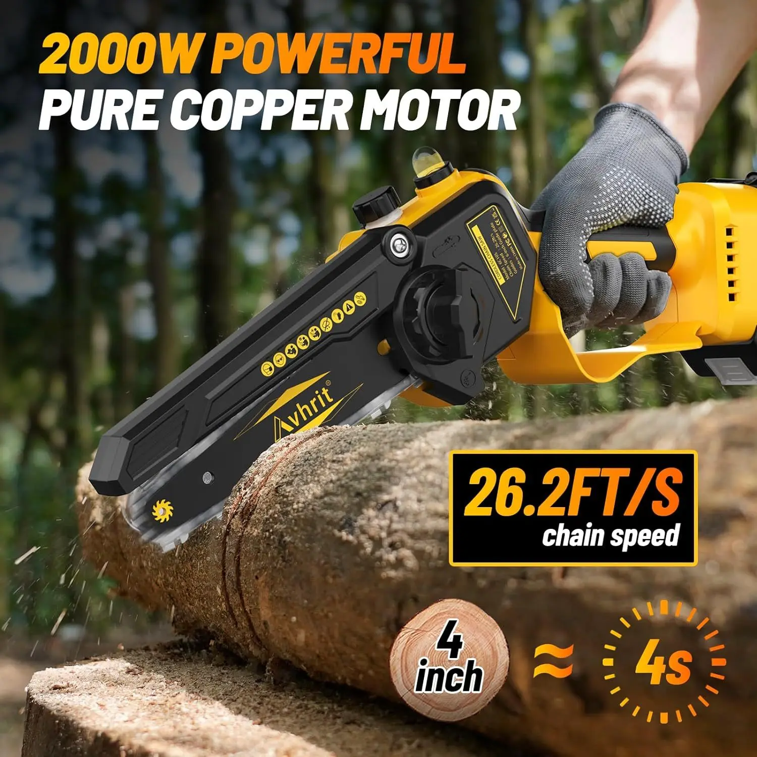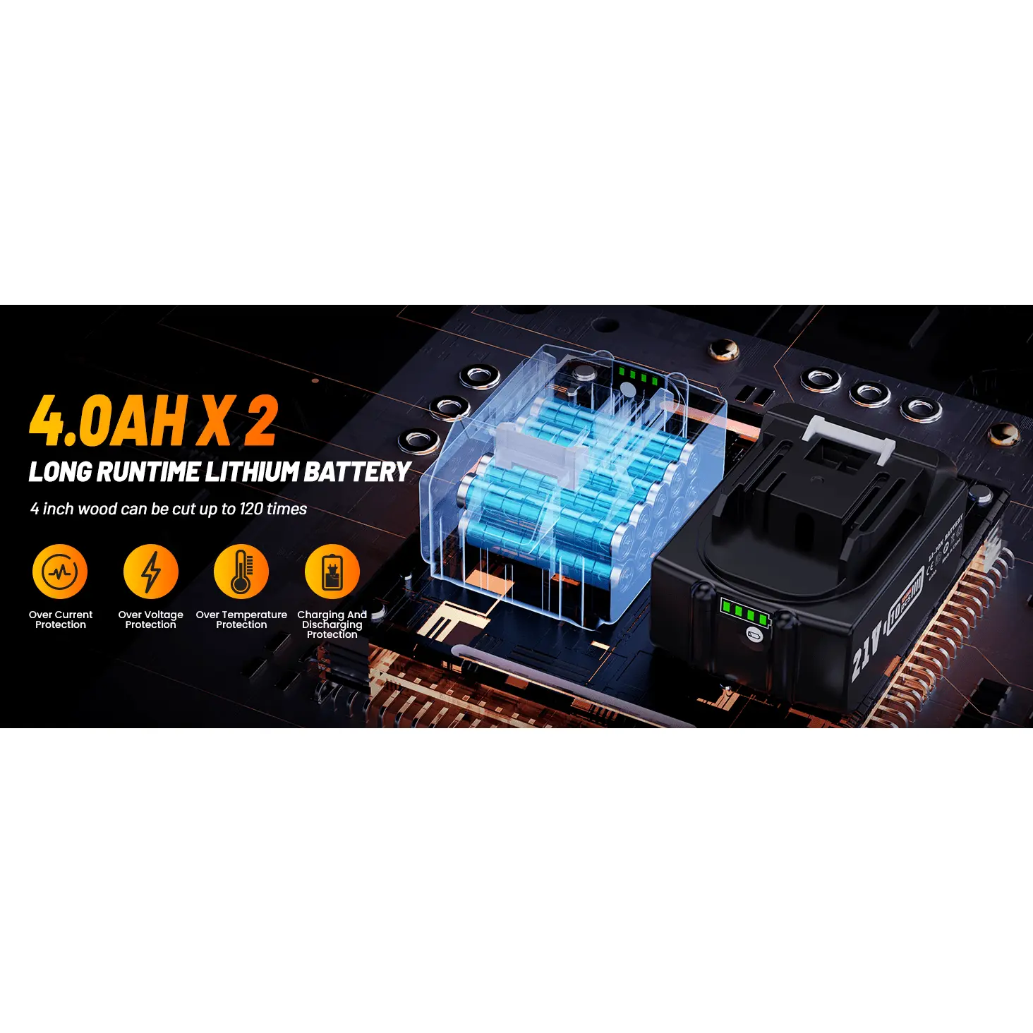 [4.0Ah Ultra-long life battery battery] Avhrit electric chainsaw adopts two high-quality 4.0Ah large battery, and is equipped with Avhrit energy-saving chip to continuously optimize current output. 2.5 inches of wood can be cut up to 200 times, and 4 inches of wood can be cut up to 120 times. This is the amazing chainsaw you deserve!