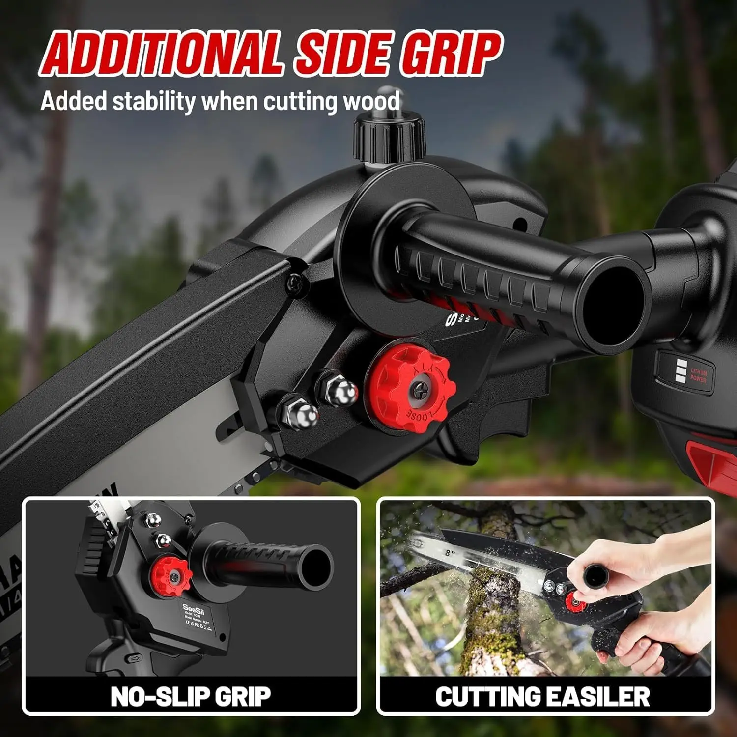 Seesii Mini Chainsaw 8-Inch, Cordless Battery Chainsaw with Extra Grip, Brushless Chainsaw with Automatic Tanker, 2 21V 2000MAh Batteries, Handheld Chainsaw for Tree Pruning and Cutting
