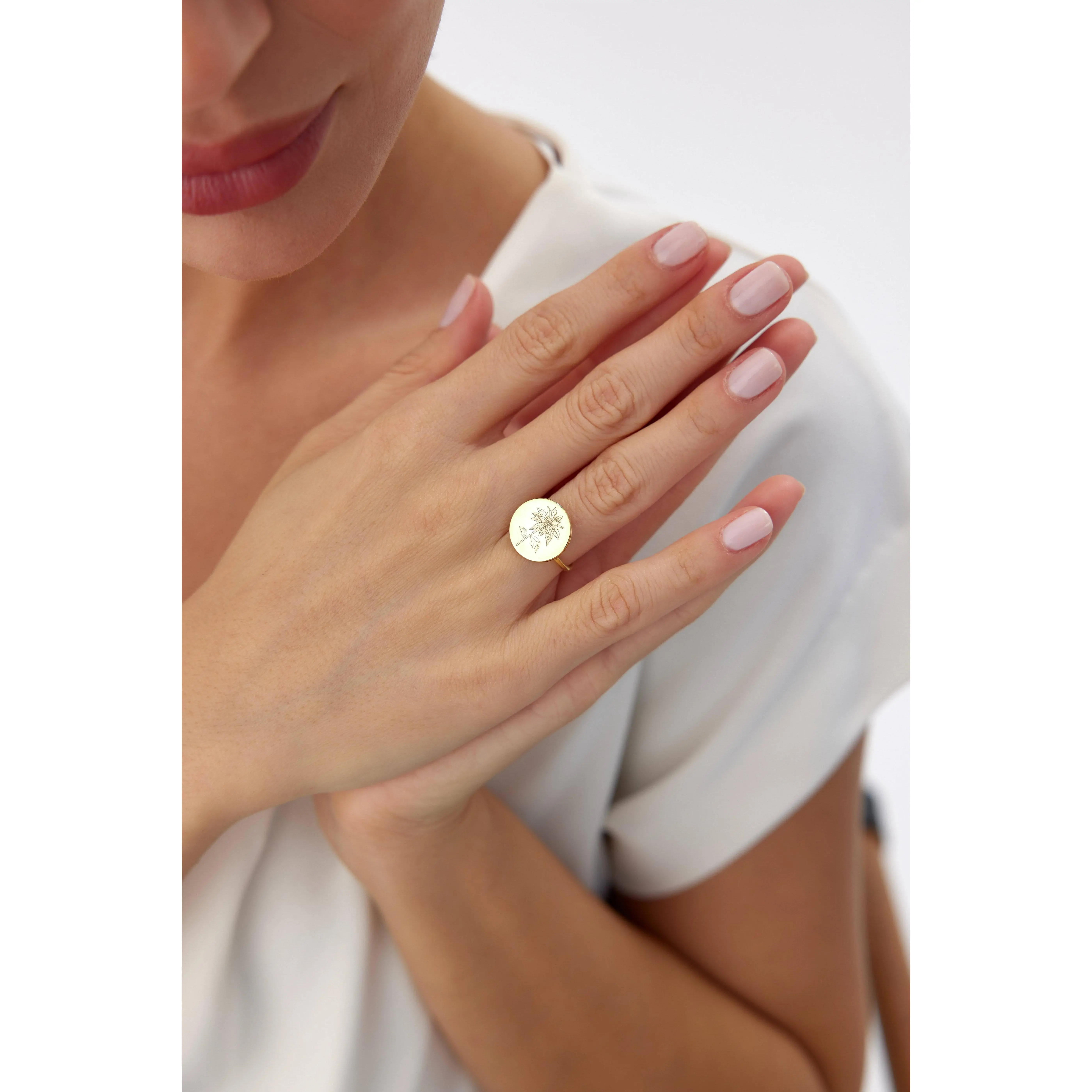 Our Midi Circle Birth Flower Ring is carefully made from high-quality 925 sterling silver, which makes it last a long time and feel expensive. The round signet design has a birth flower that is carefully engraved to show the month of birth and give the ring a personal touch. The simple design makes it a useful accessory that goes with any look, from casual to dressy.