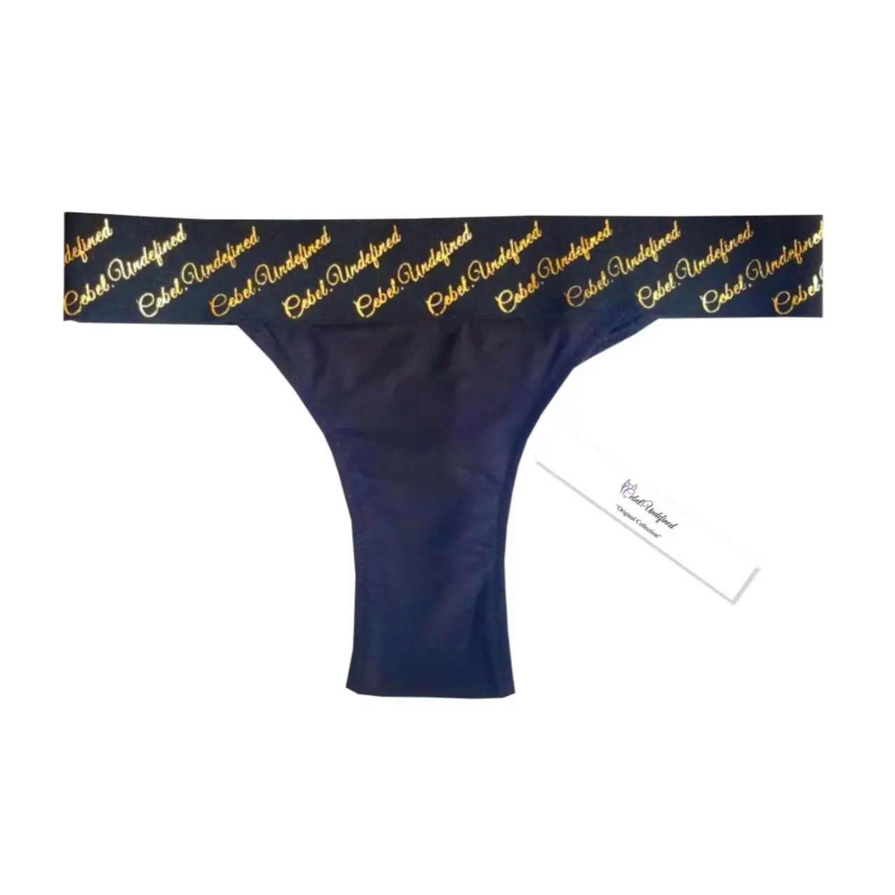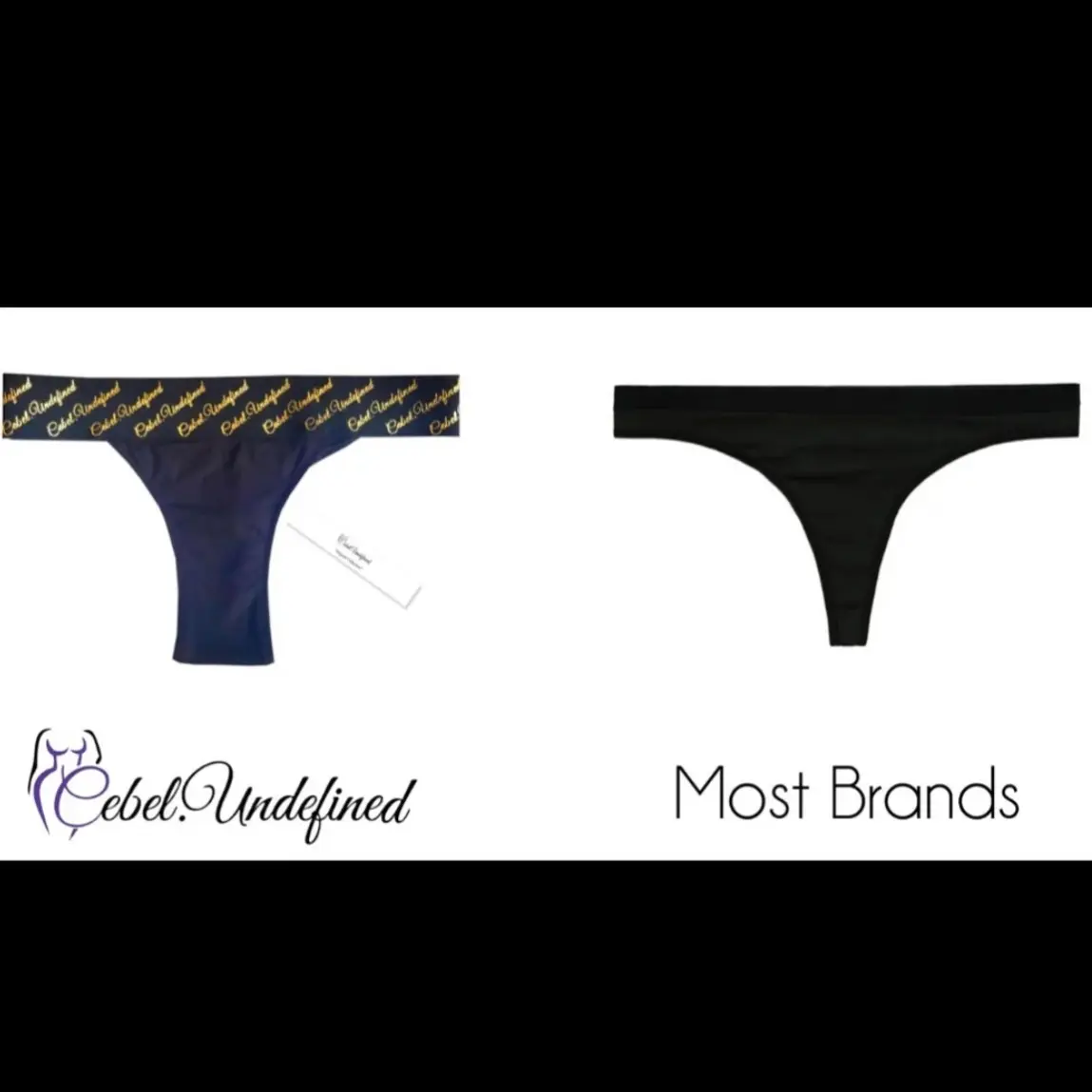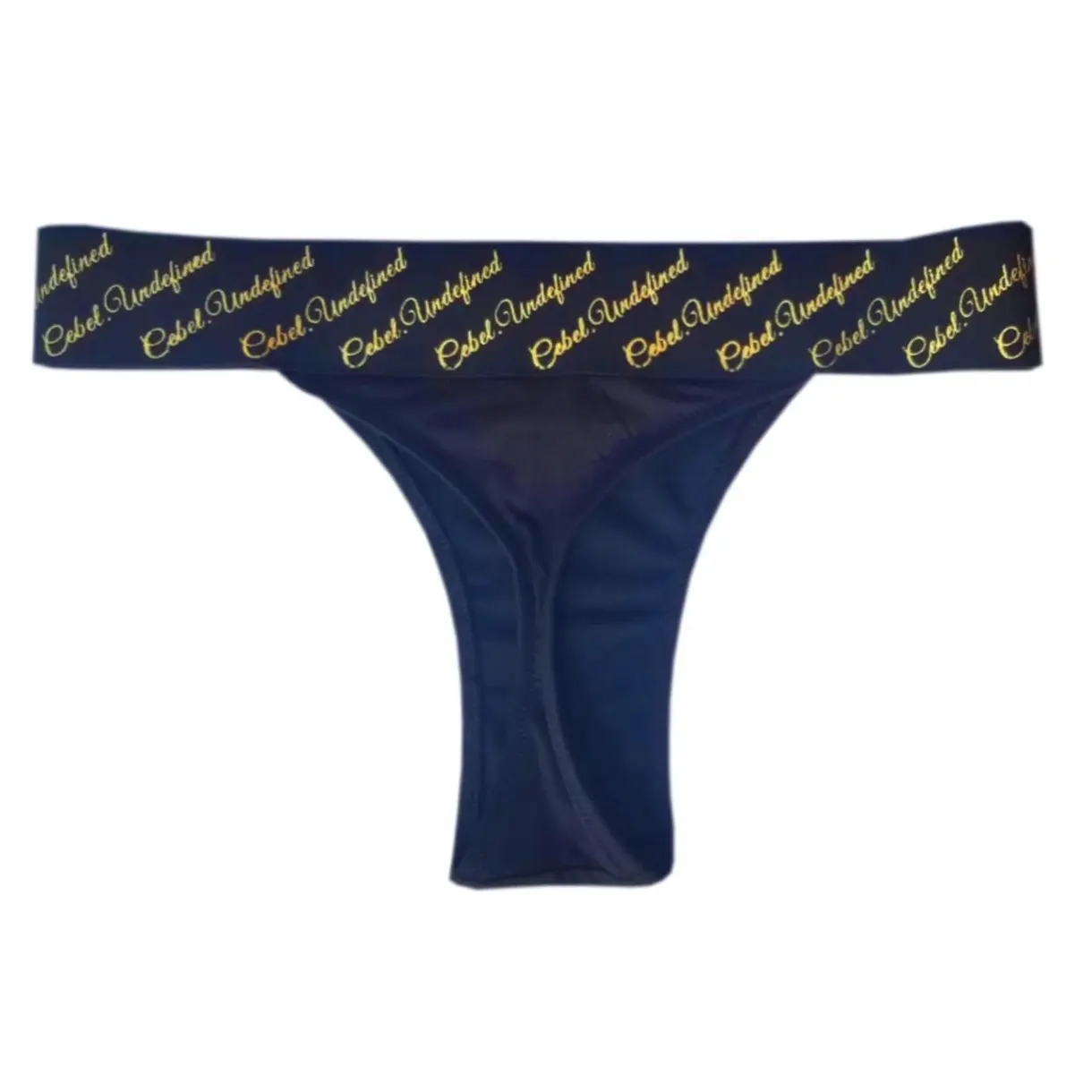 The Cebel.U signatures on the thong add a touch of style to the design. The first model is wearing a size small, and the waist-clincher design provides additional crotch coverage for added comfort. The stretchy material allows for a comfortable fit and can accommodate different body shapes and sizes.