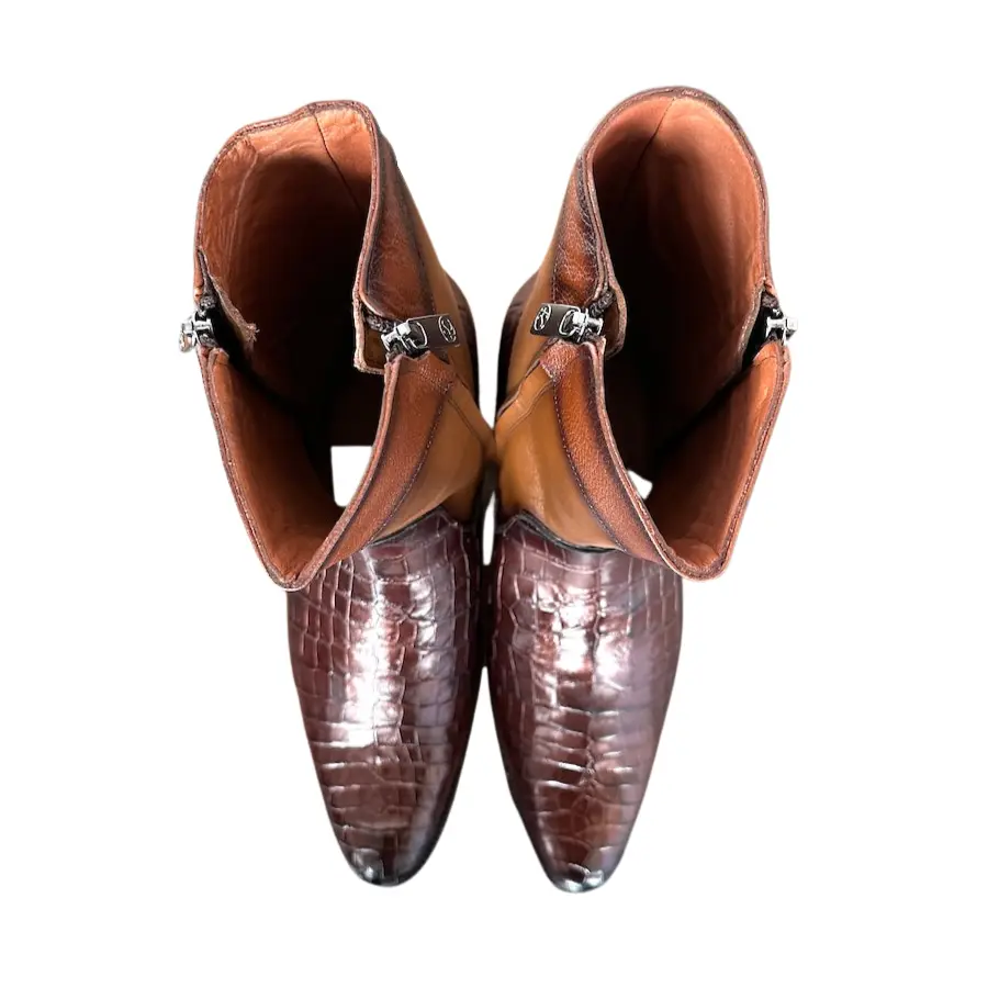 Wipe with a soft and slightly damp cloth (with clean water) to remove dust; let it dry, apply color cream, and then polish with a smooth and dry cloth. It is essential not to shoe shine the boot; otherwise, the natural touch and appearance could be damaged.