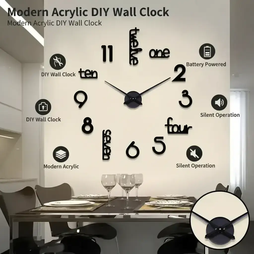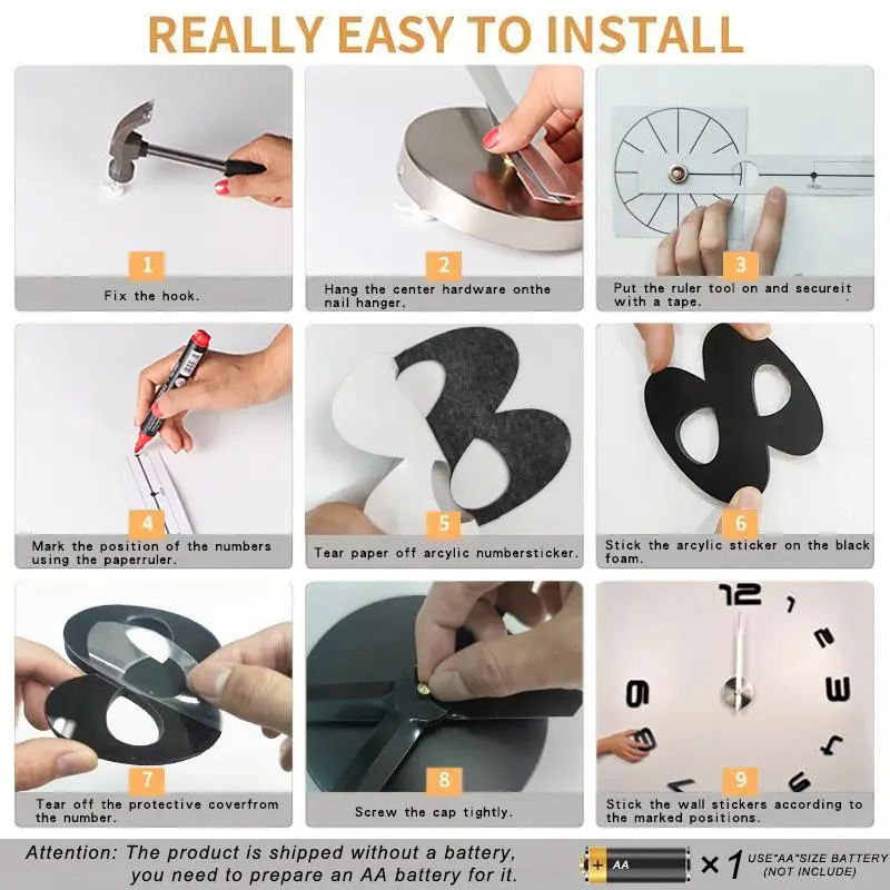 This was an amazing big clock . Foam bottoms and plastic tops, peal an stick. But very neat and looks clean . I will be buying more.